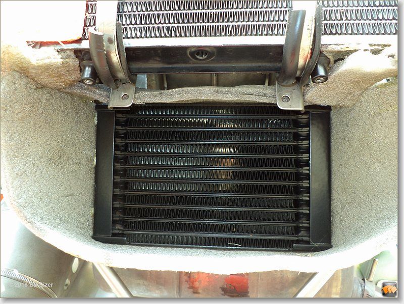 Вообще, похоже, что крепления радиаторов потерпели переделку от первоначальной установки и "в полевых условиях",- из подручных материалов. Был "маленький" штатный радиатор - заменили на "большой", переделали крепление. Зачем меняли радиатор?