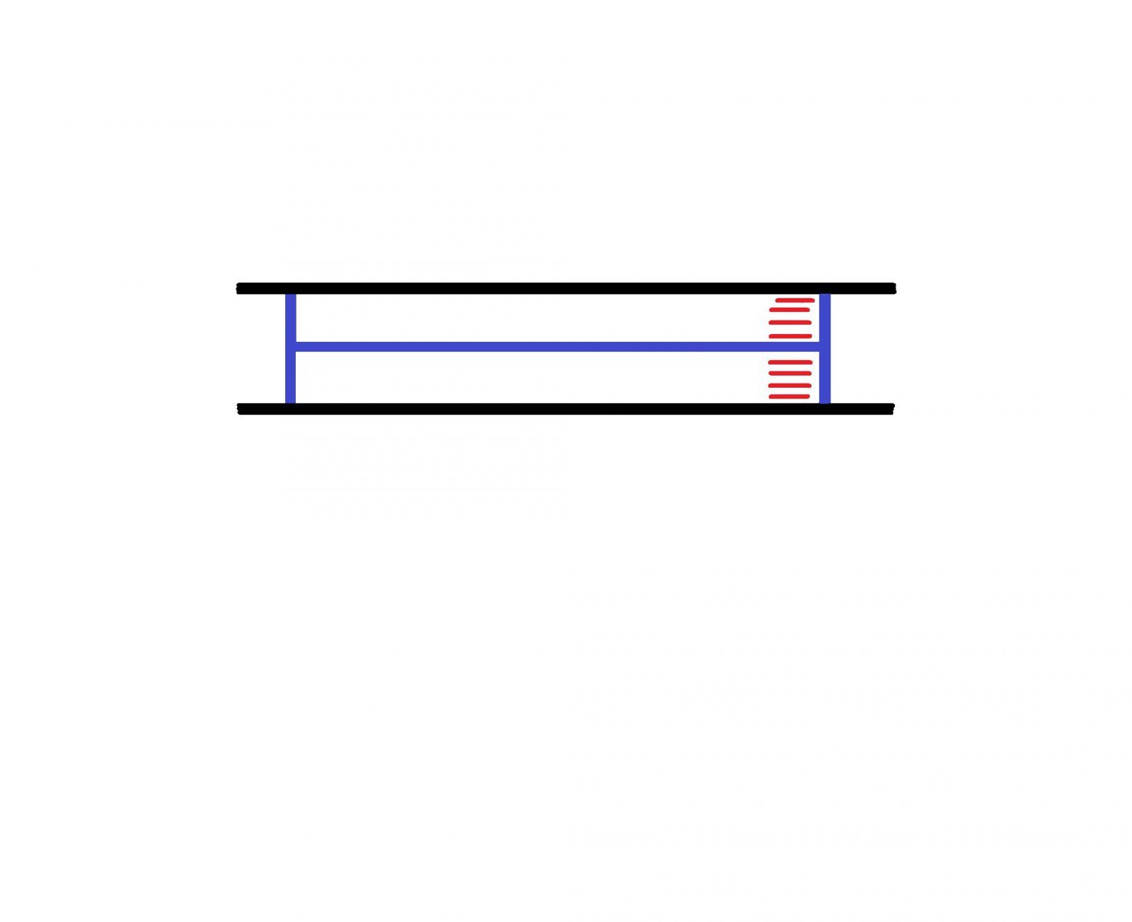 Труба. два поршня соединенные стержнем (штанга). в одном углу порох (красным).