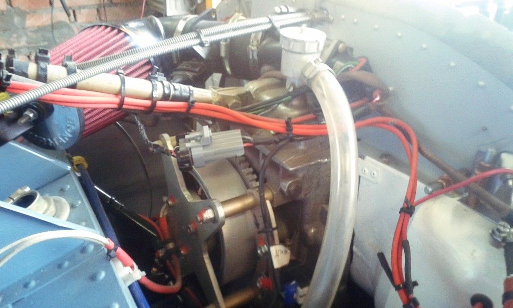 Генератор с какого-то квадрика 400 ватт, модернизирован до существующего вида. Компактность имеет в довесок недостаток в виде шунтирующего реле-регулятора, из-за которого в бортовой сети выбросы плюс-минус 2,5 вольта. Посему установлен электролит (как на Ротаксе-912) 33000 мкф.