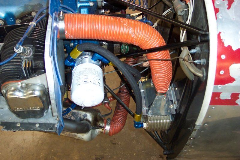 Для эффективной работы любого устройства, обеспечивающего теплообмен, необходим достаточный проток воздуха мимо поверхностей, этот теплообмен и обеспечивающих. При этом, надо иметь в виду. что, в случае возможного пути обхода, воздушный поток и пойдет по этому пути, не испытывая сопротивления обтекания теплообменника. Поэтому, канал маслорадиатора должен быть построен точно по тому же принципу. что и охлаждение оребрения цилиндров и головок - без щелей по периметру, и при наличии отсоса выходной части канала.