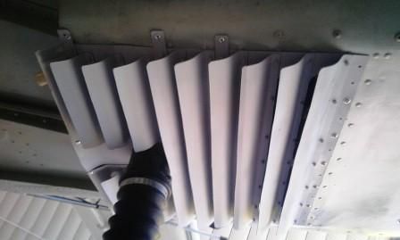 Установил вместо регулируемой заслонки внизу капота эрзац-жалюзи, по типу как на капоте Як-55. Померяли перепад давления - получили на пробежке при 70 км/час перепад давления над цилиндрами и в нижней части капота 25 мм. вод. ст.