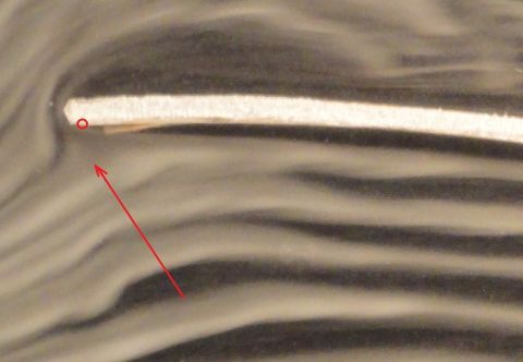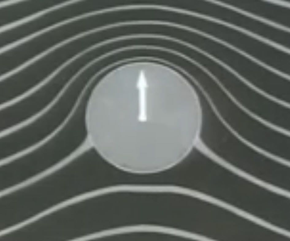 Возьмите ластик, (резиновый параллелепипед) прижмите его пальцем сверху у одного конца на краю стола, а другим нажмите сверху на его свободный конец. Ластик изогнется. Представьте себе, что это моделирование отклонения (скоса) потока вниз.