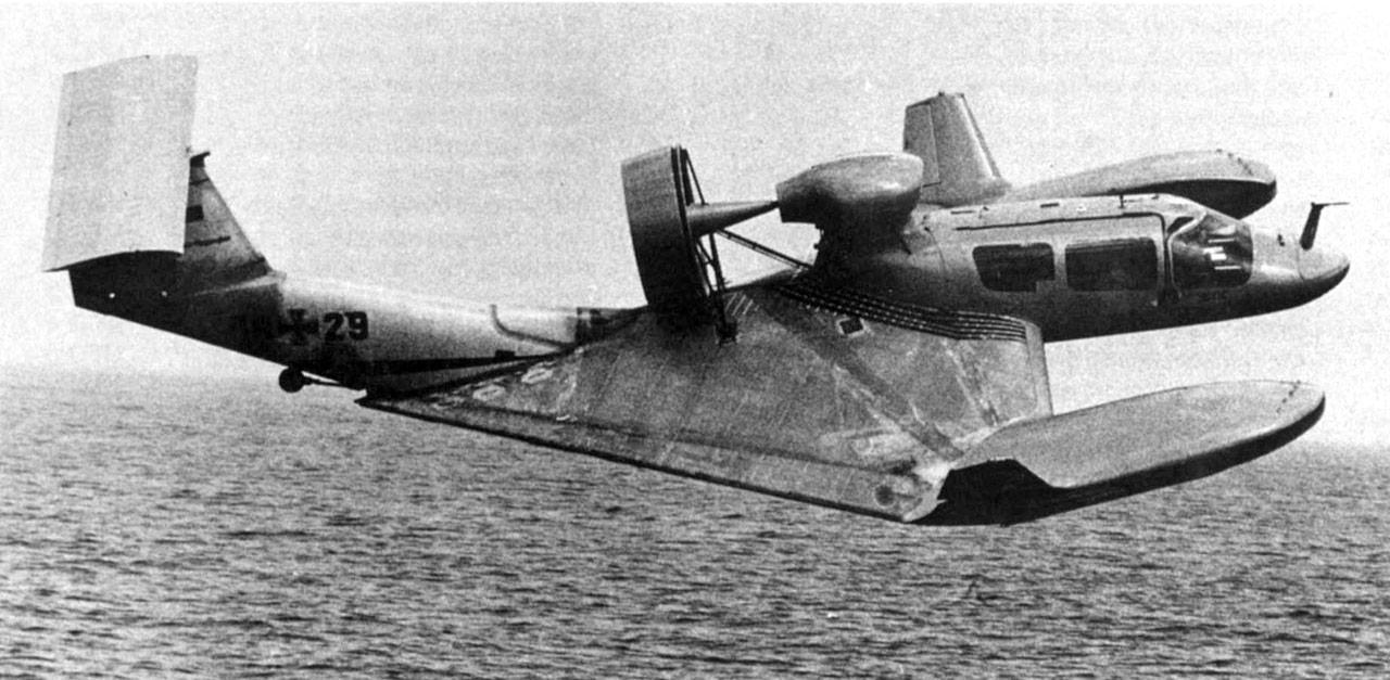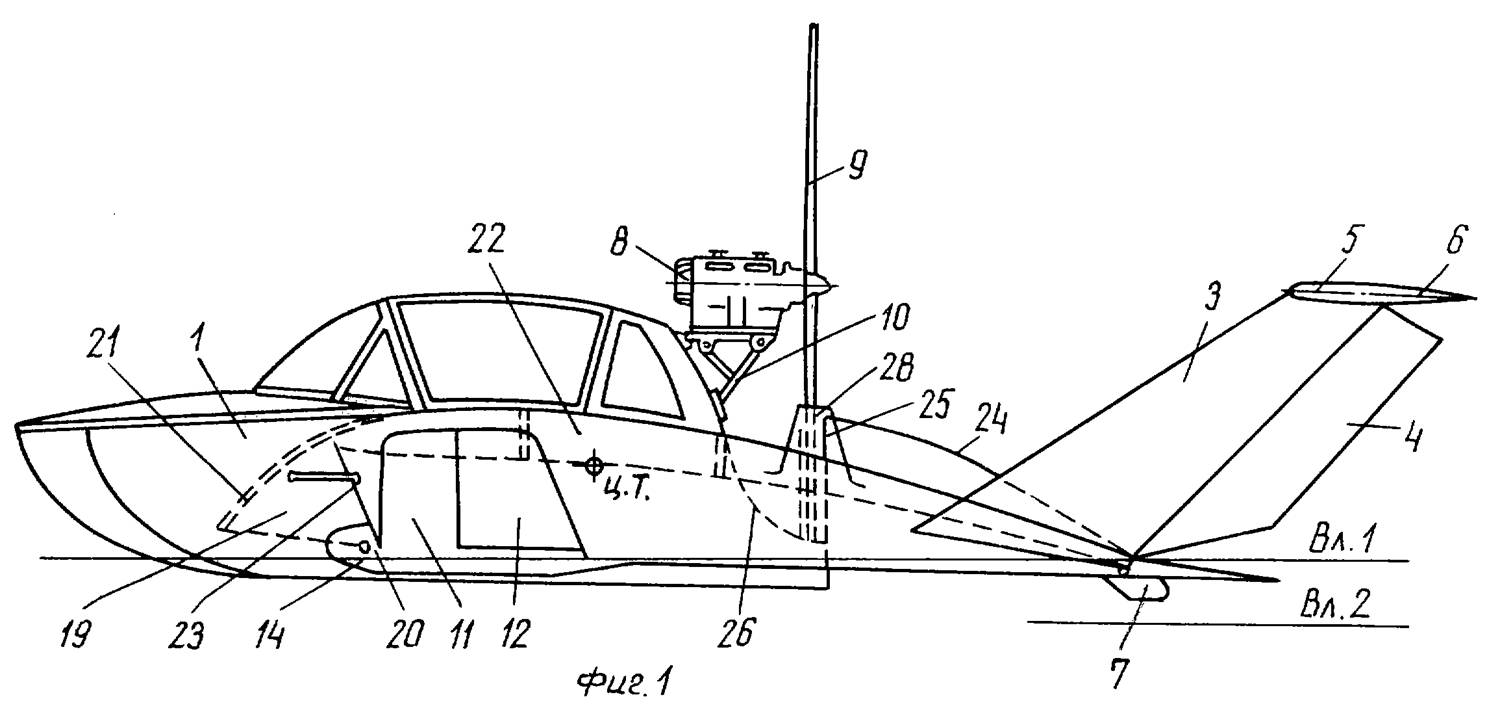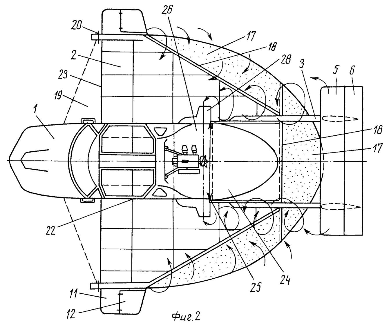 Лично мне не нравится толкающая схема в экранопланах из за потери возможности поддува под крыло. Компромисом будет схема экранолета Макарова (Патент RU 2185979). Кроме этого она привлекательна тем, что за счёт полуокружности на задней кромке позволяет получить большую среднюю хорду. Я, в отличии от Макарова, не аэродинамик, но чутье и исторические примеры самолётов с таким планом крыла (ARUP) подсказывают, что истина рядом.