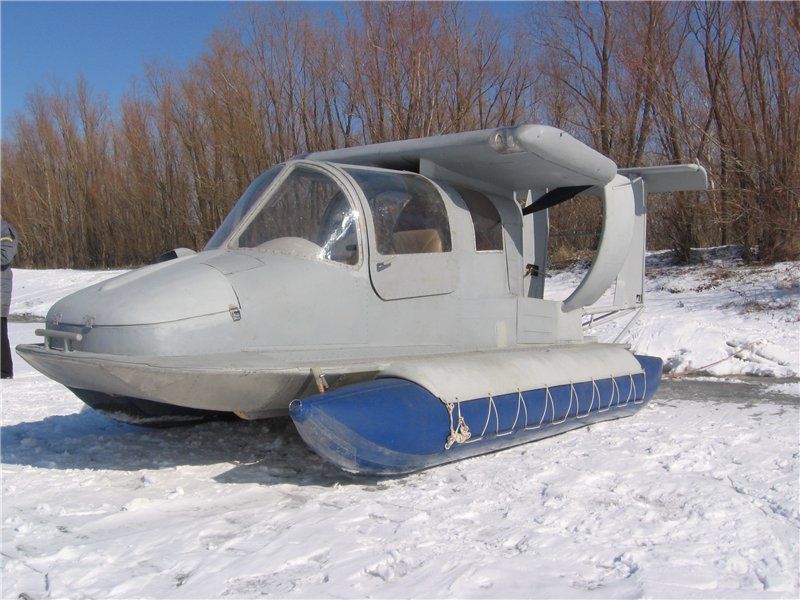 Не знаю, много желающих на форуме что бы он не полетел ! Дело в том , что, первоначальная компоновка была с двигателем ВАЗ- 21083 72л.с. Тяга на стопе при +20*С была 180кгс , и при пробежках по негладкому льду-снегу было достигнута скорость 40-50км/час вдвоём на баллонах , что явно недостаточно для взлёта.Баллоны 4-х метровые прилично тёрлись на льду.. Был куплен двиг субару 2.0 и до сих пор не установлен, занимался строительством известного аэроглиссера  с Кастером..Теперь глисс построен и с начала года буду заниматься Вжиком , у которого платформа между 2-х баллонов Д=400мм помимо крыла на пилоне 8000 Х 1300мм. Регистрирован аппарат как аэроглиссер с аэродинамической разгрузкой, и мне абсолютно пофигу как он будет называться.Знаю точно- экранный эффект будет присутствовать и его количество в килограммовом эквиваленте можно будет установить увеличением загрузки ..