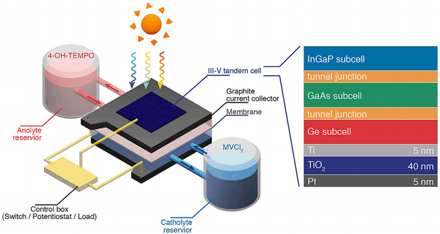 Группа инженеров под руководством Суна Цзиня из Висконсинского университета в Мадисоне создали устройство, которое позволяет из проточной батареи выдать 14,1% энергии, попавшей на солнечную панель. При этом в аналогичных устройствах такой показатель в разы меньше.
