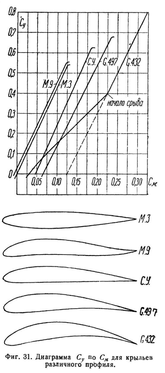 На стр. 397 для профиля Р-II с подвесным закрылком (Юнкерса) - также загибается, особенно на 20 градусах отклоненном закрылке, при Cy меньше 0,25
