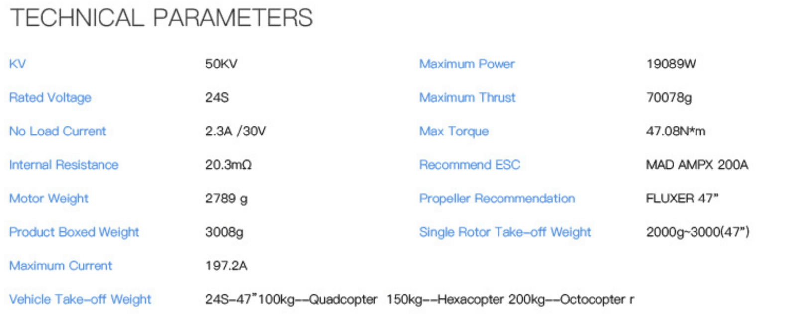 Вы нашли там информацию о напряжении рабочем? Я не нашел. Вопрос не праздный. Я не знаю, какие моторы ставят на планеры, но знаю, что для транспорта любого, напряжение бортовых сетей не больше 24 вольт. Если так, то посчитайте силу тока для отбора мощности в 30 кВт. Больше 1000 Ампер будет. Дальше прикиньте необходимое время отбора этой мощности, а потом удивитесь, какая нужна ёмкость аккумулятора, и какой у него будет вес. Про толщину проводов страшно даже подумать.. Может я не понимаю чего-то? Тогда растолкуйте..