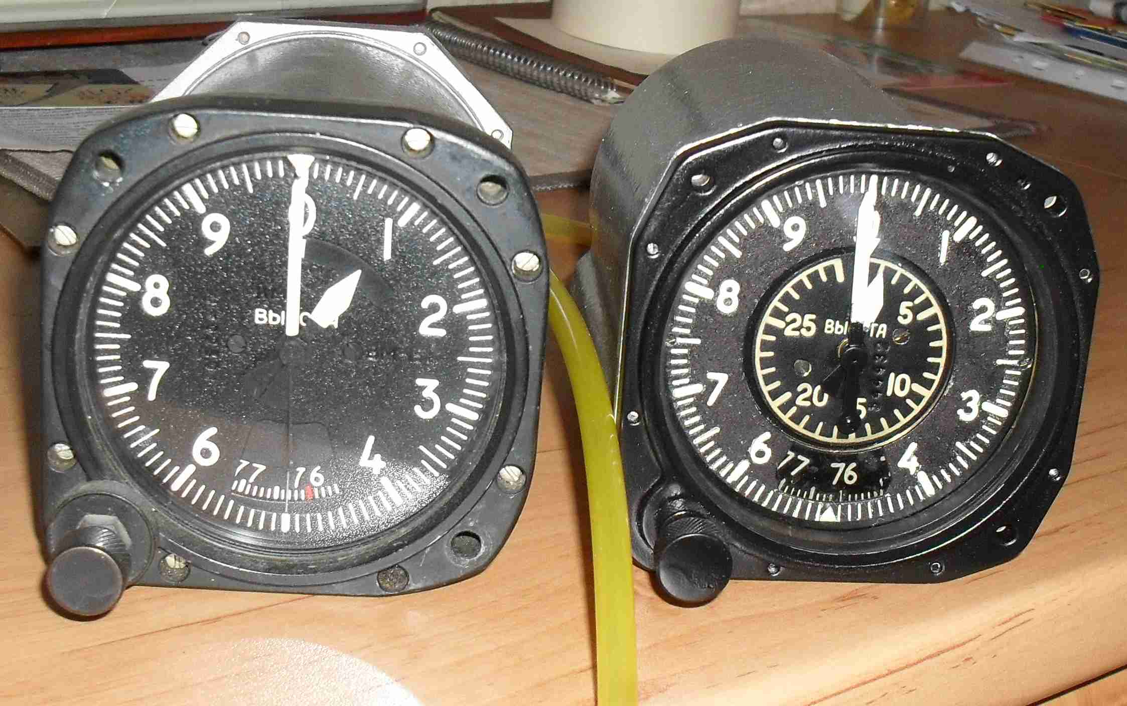 Избыточное давление. Наверняка в качестве заглушки использовалась трубка типа" кембрик". Один конец на С другой на Д . Одевалась очень плотно и причем одновременно на С и Д. Стрелка прибора стояла на 0 ( на упоре) Второй вариант -резкое снятие той самой трубки, причем одновременно. Обычно ставят раздельные заглушки и не герметичные. Или везли ваши приборы самолетом с герметичной заглушкой, при этом манометрическая коробка стала анероидной. Короче, стрелка -упор-загерметизированная коробка сдвинули стрелку на оси. Другой причины я не вижу. Действия-разбираем прибор,стрелку выставляем на 0 при свободных штуцерах С и Д.