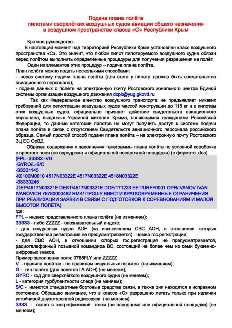 Нарушен порядок заполнения полей FPL (бортовой номер) - меры воздействия законодательством не предусмотрены, т.к. читаем дальше, но план подан на конкретное лицо, разрешение получено на ИВП.