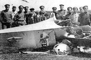 Фото на фоне разбитого самолета погибшего боевого товарища. Хм... Для того времени, видимо, в порядке вещей. Возможно потому, что гибель на боевом задании еще не рассматривалась как однозначное поражение или, по нынешней терминологии "неудача".