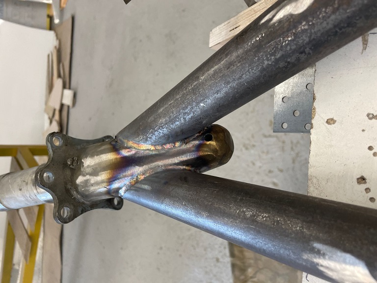Желательно получить плавный переход от поверхности трубы к поверхности этого, ну у человека-маньяка в штанах, как его, ээээ ... полуоси.