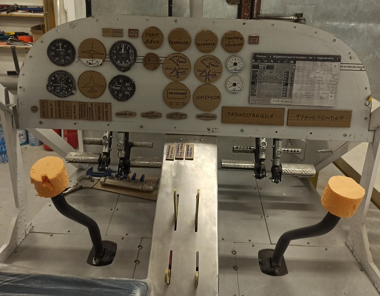 Думаем пока над этим. Часы будут задублированы в электронном виде на экране. До р/ст достают оба без проблем, а вот с транспондером уже сложнее. В центр не вариант, там косой раскос мешает(в следующей версии, если она будет, перегородки между членами экипажа уйдут. Будет чистый пол), почему собственно р/ст и сместили в сторону от центра. Учитывая, что самолёт всё таки больше под севера, печке, распределению потоков и миксованию уделили очень много внимания. Возможно и излишне, но убрать проще, чем дополнять. Потому по центру и обосновались ручки регулировки всевозможными распределениями потоков тёплых и холодных обдувок. Тем более, что для них не требуется много места.Транспондер, часы и р/ст целесообразно размещать в зоне досягаемости обоих пилотов. Если есть возможность «поджать» ПКРД, то найдется место по центру. Часы можно на двигательный пульт вынести.