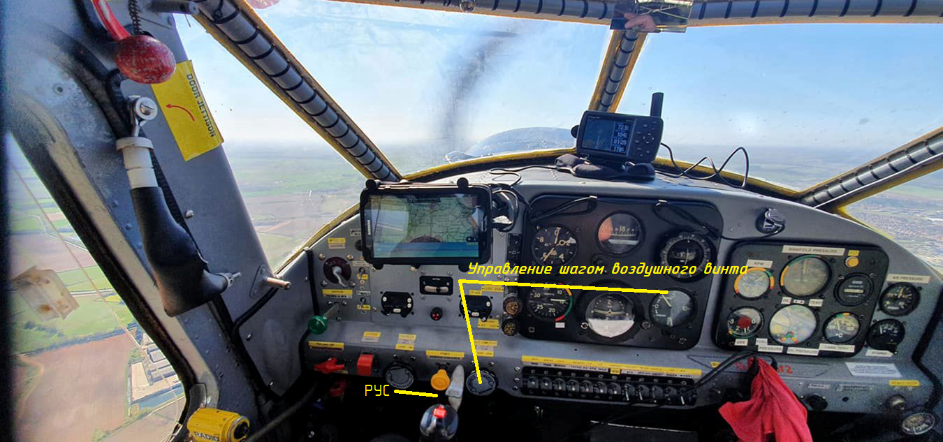 Давненько я на нём летал (в 75-76 годах прошлого века). Но прекрасно помню за что меня инструктор аэроклубовский материл, что РУС держал левой рукой. А когда РУС держишь правой, а крутишь шаг винта левой - получается "перехлёст" рук...