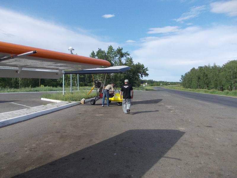 Площадку с выложенным "Т", предложенную местными пилотами, к сожалению, так и не обнаружили. Как и встречающих. Сели на дорогу вблизи заправки...