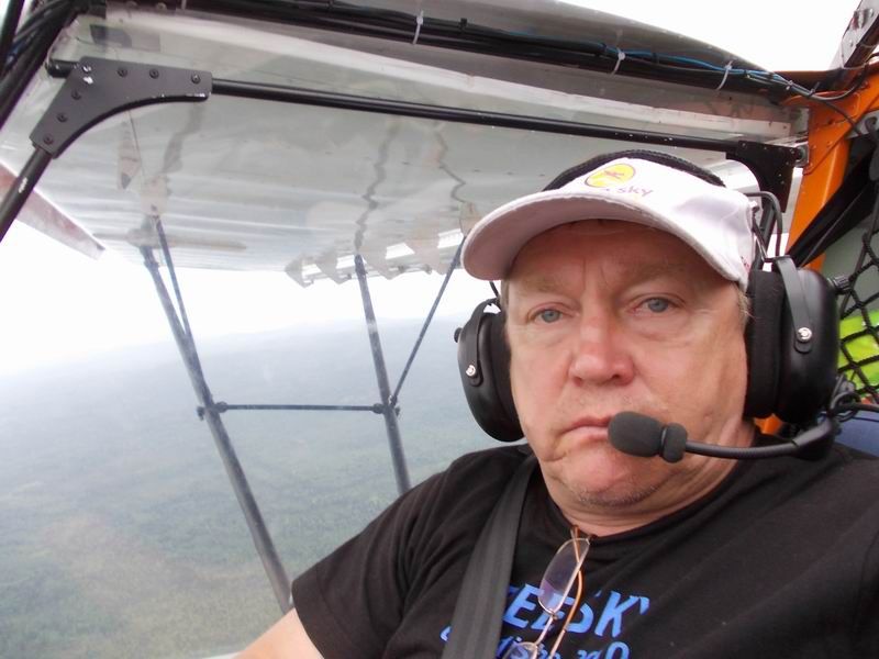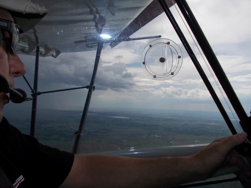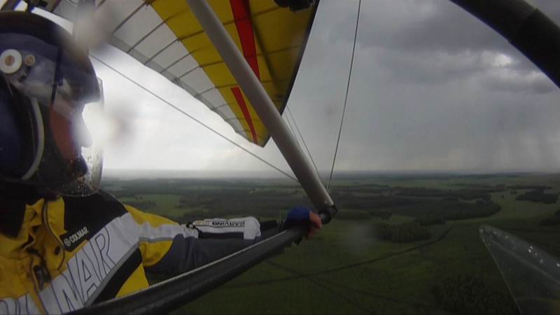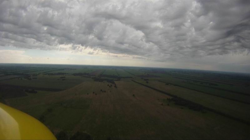 От Саргатки до Сашиной поляны 67 км. Летели у самой земли над деревьями прямо в лоб к ветру 55 минут (ветер 25-30 км/ч). Александр вылетел навстречу на своём самолётике, дал направление на площадку и встал в круг…
