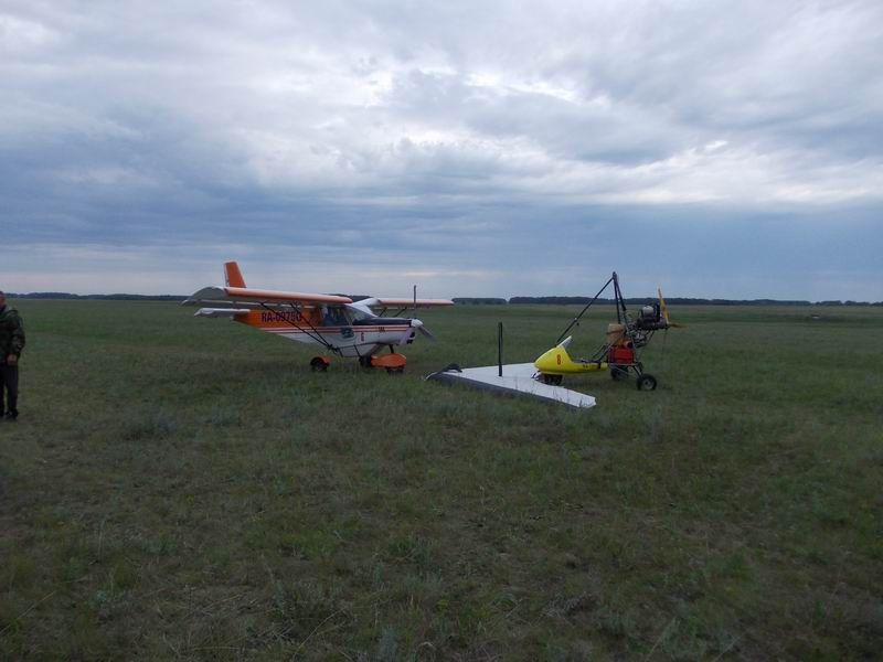 Посадка, поздравления, обьятия и ...тучи, тучи комаров! В свете фар привязываем самолёт, снимаем с дельталёта крыло и друзья увозят нас на постой...