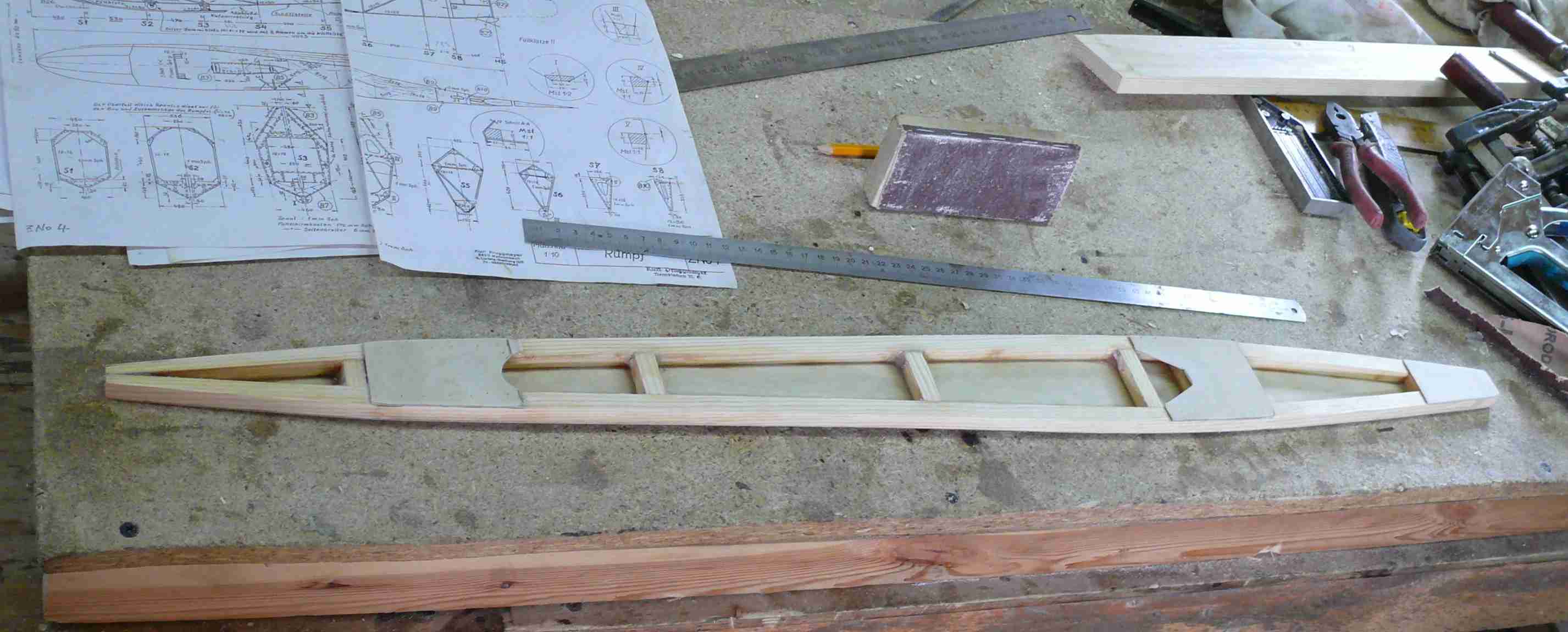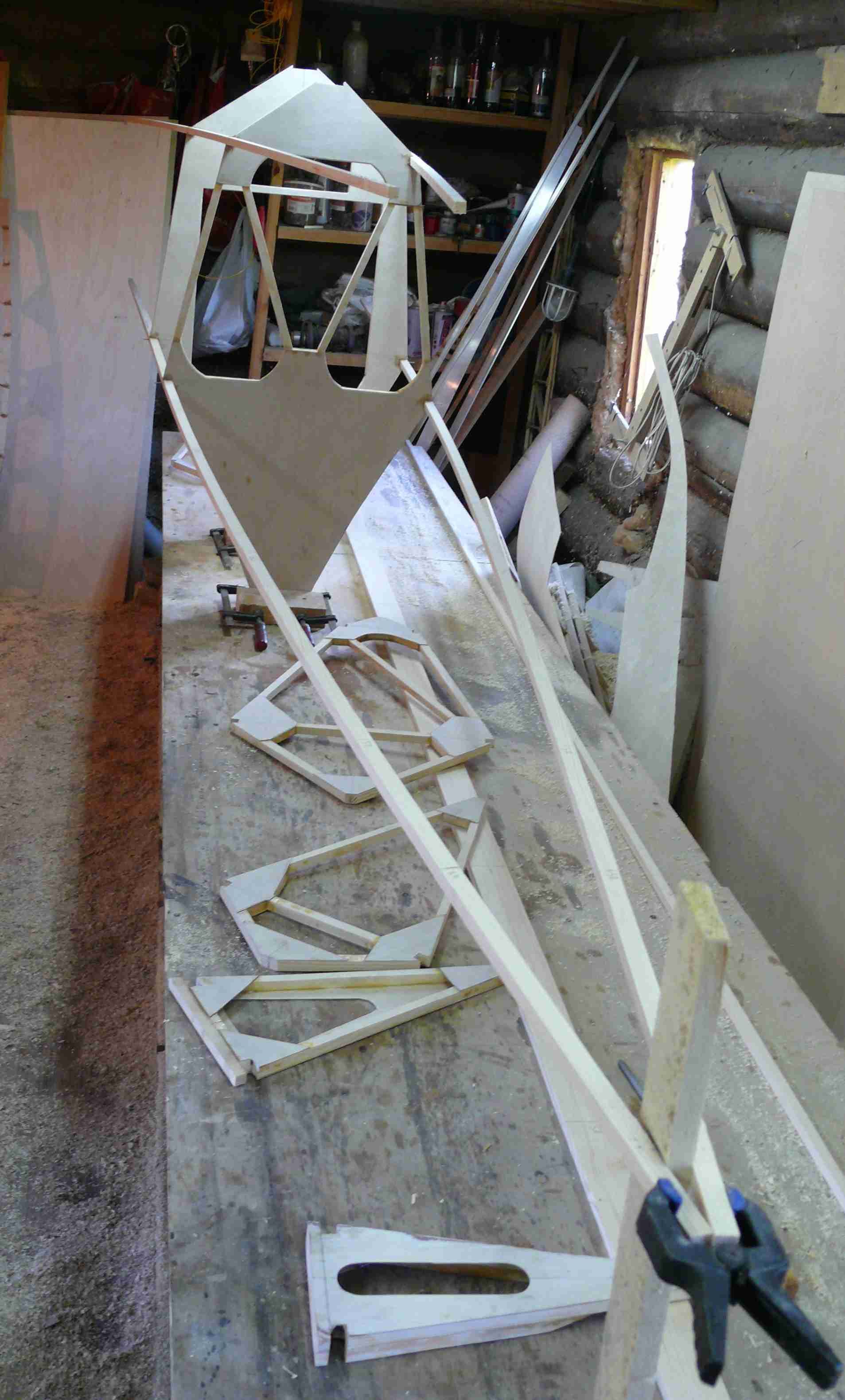 Да, стоимость работ - 150тр. Материалы все мои. На данный момент я потратил 60тр на 15 листов фанеры (брал с запасом на другие нужды, несколько листов останется), 10 тр - смола , дерево, ЛКМ, 7тр - эмалит, 7тр - железки ( сталь, дюраль, троса, тендера, ролики, трубы, метизы.) 10 тр - синтетика для обтяжки. Эмалит и ткань брал с запасом, мне еще предстоит перетяжка другого самолета. В общем основа идеи получить планер за 250 тр, пока в сумму укладываемся. По срокам - вместе с моим строится еще один такой же планер. Поэтому в 3 месяца мастер , разумеется, не уложится, но нас это устраивает, мы никуда не спешим.