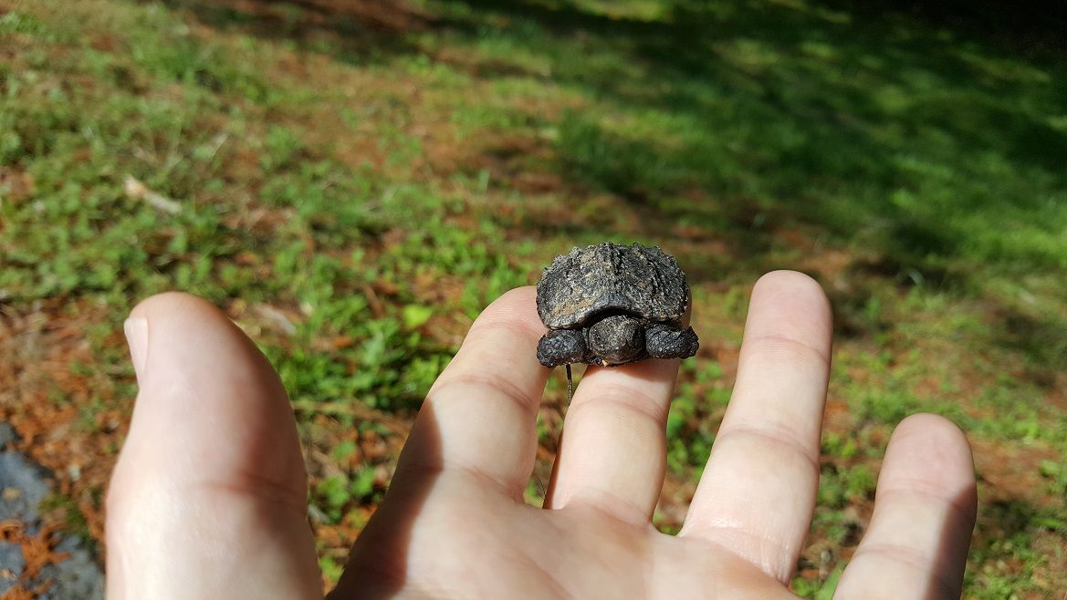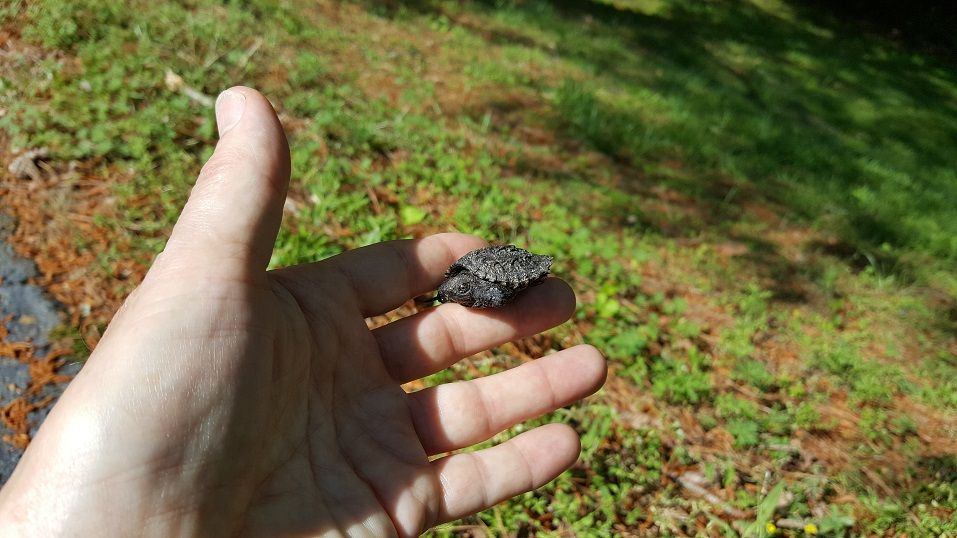 А это позавчера погулять из дома вышел и на тротуаре черепашенка увидел. Этих черепах тут не любят, хищники они. Вырастет - будет как на третьей фотке, это тоже мы на прогулке на том же тротуаре. Это еще не предел для них по размеру.