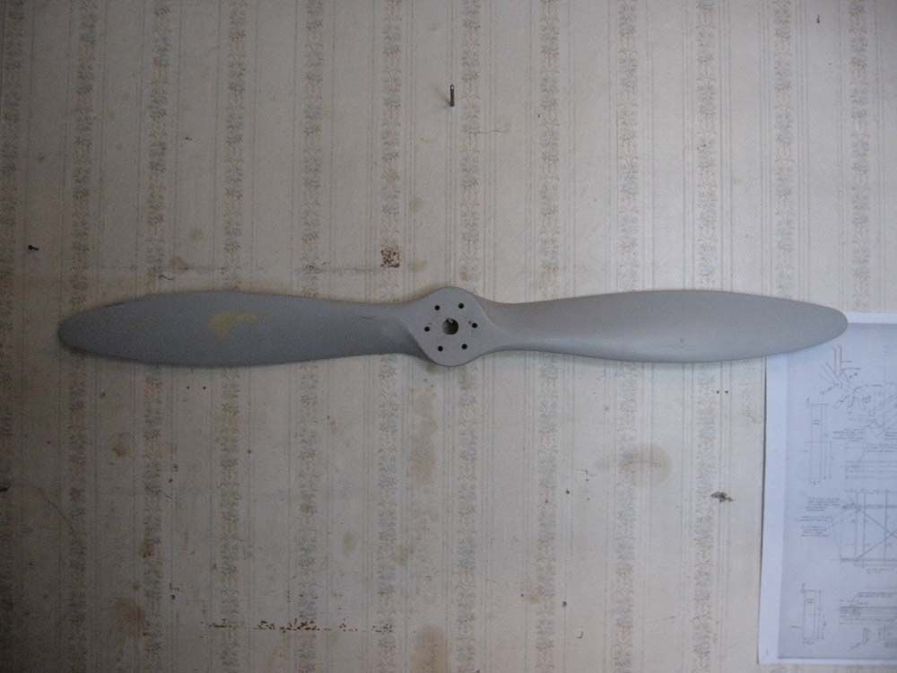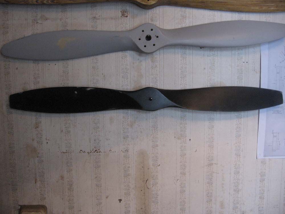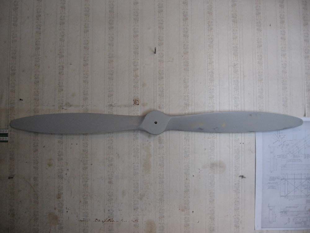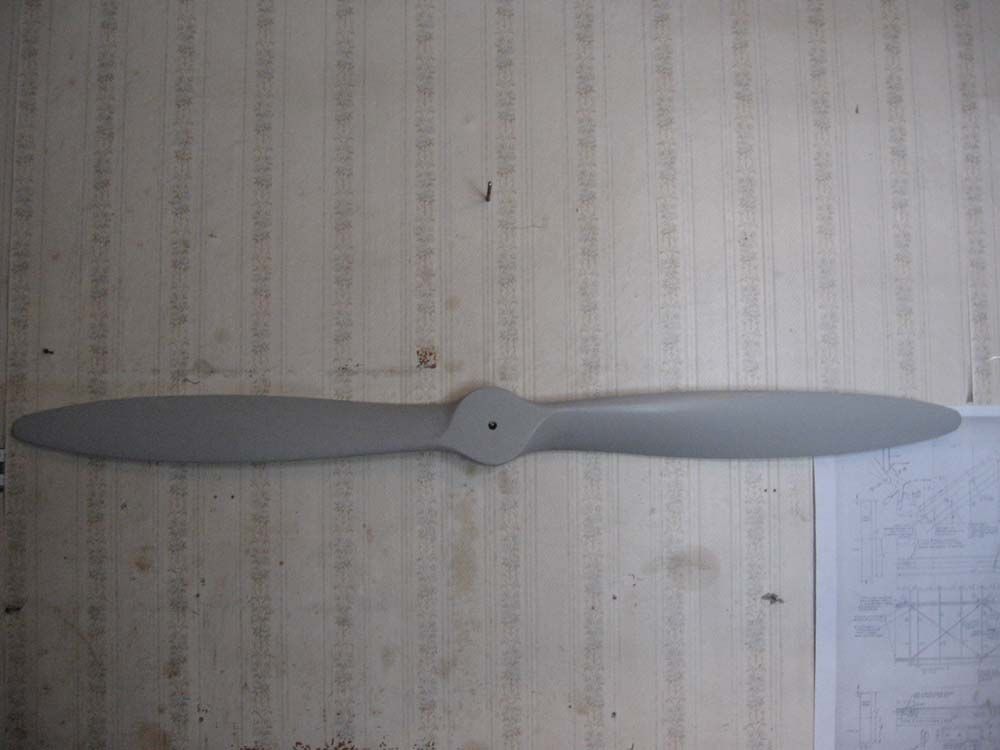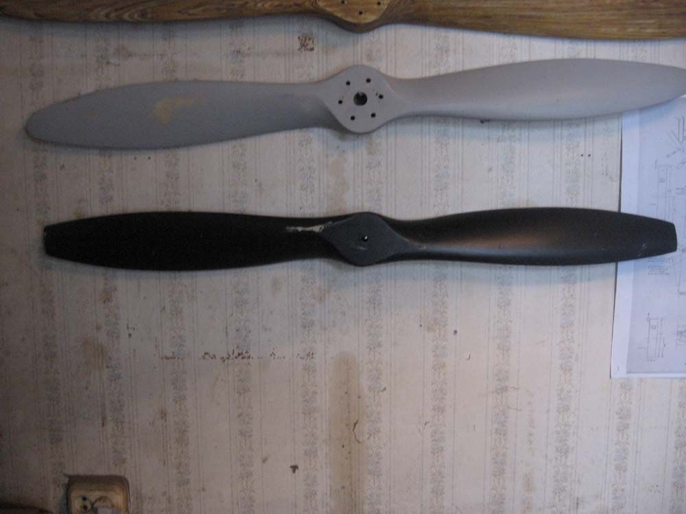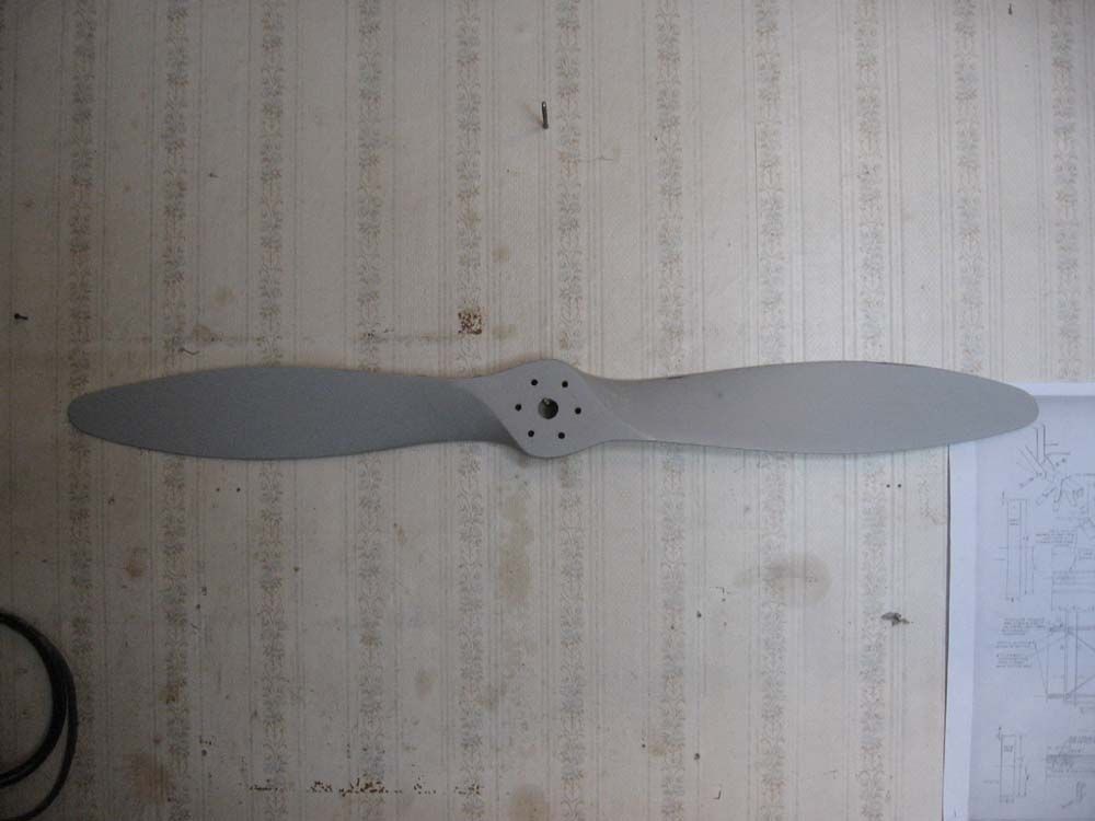Такой же винт , оклееный стеклотканью по два слоя на лопасть и четыре на носке , грунтованый , готовый к покраске