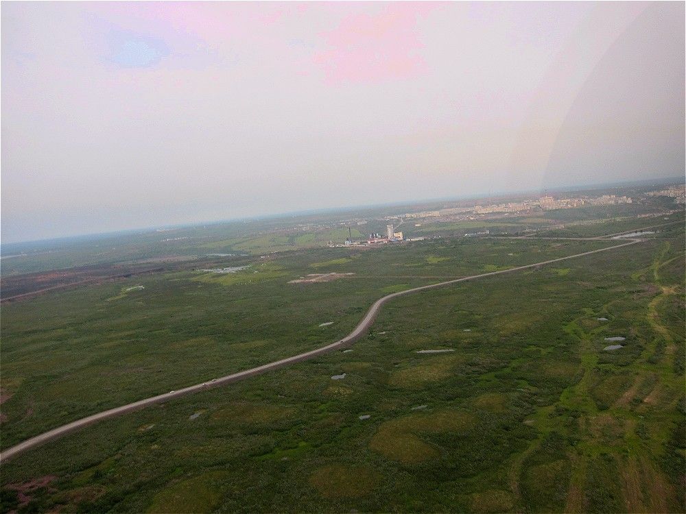 От Усинска, наш самолетик около 40 километров, шел над тайгой с редкими проплешинами дорог и газовых вышек. связь с Усинск-Вышкой вел по телефону, слышно меня было плохо.