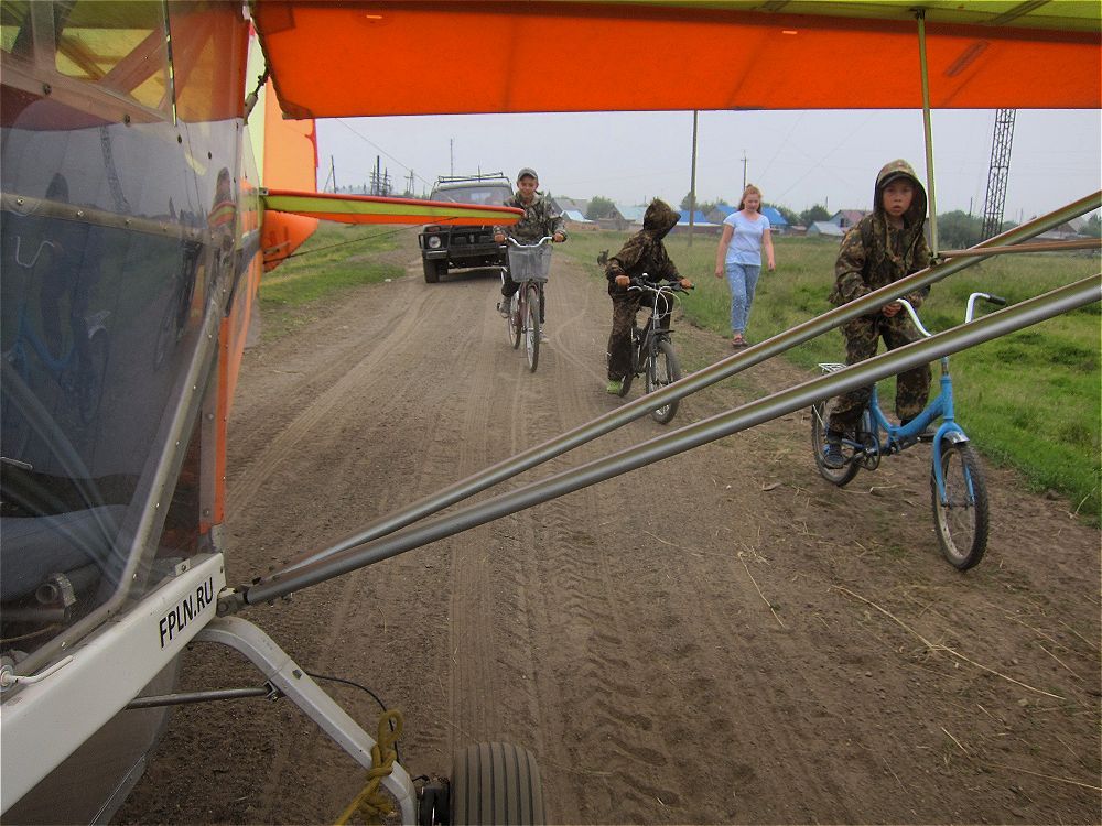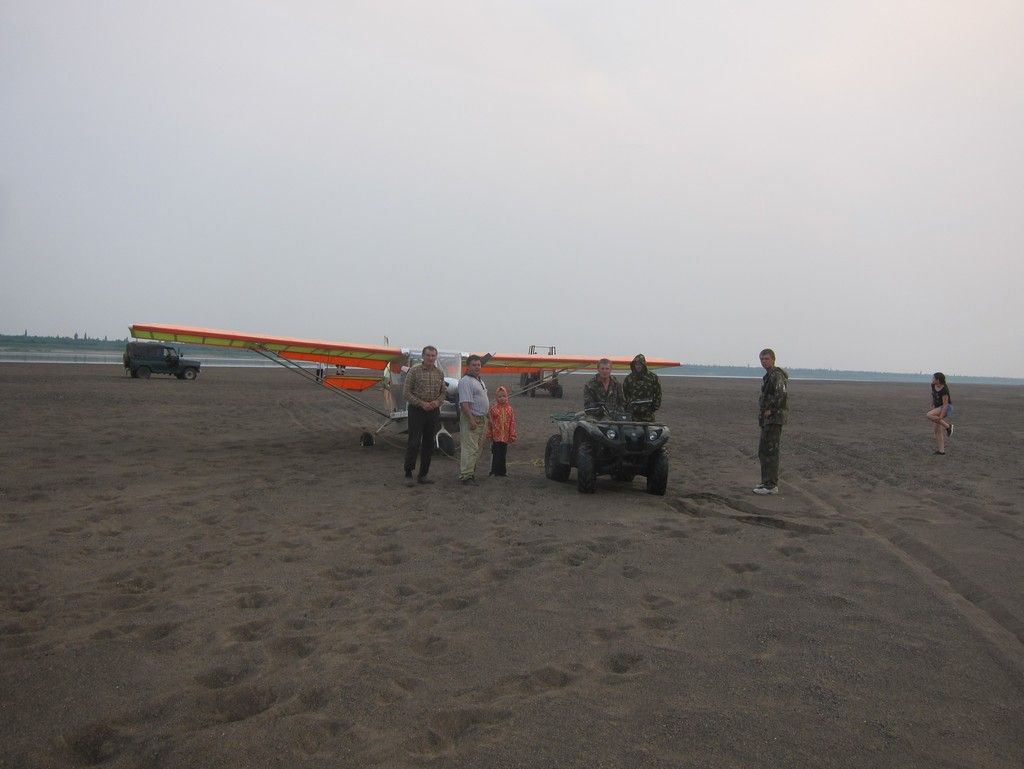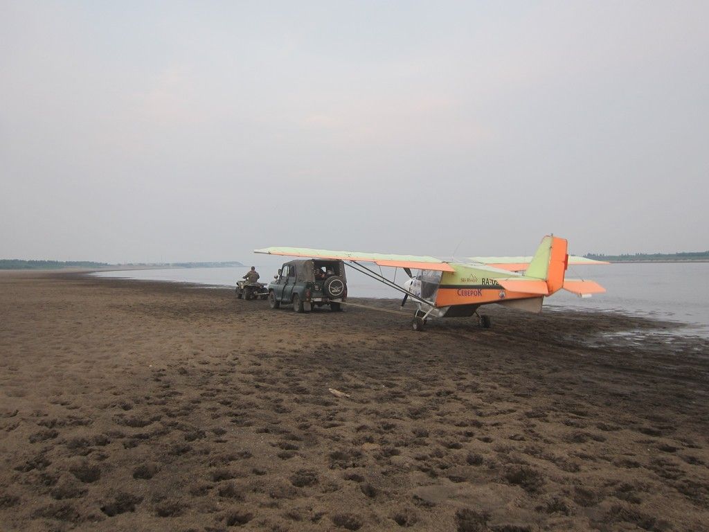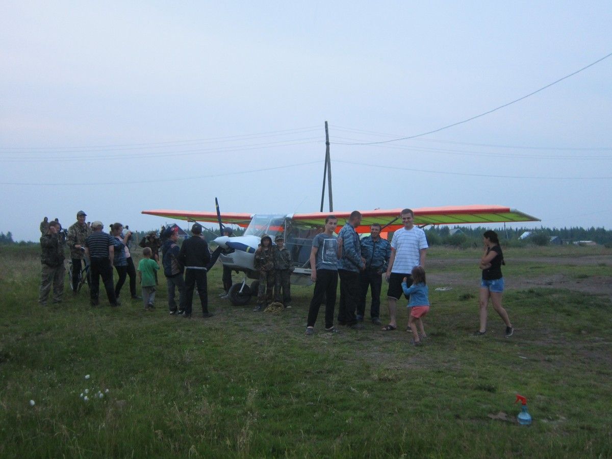 Пока я его ждал, на берегу провели смотр-конкурс самолета Северок. Приехал мотоцикл, квадрик, Уазик с порванным передним мостом. И на всем этом было много народа и целый выводок детворы