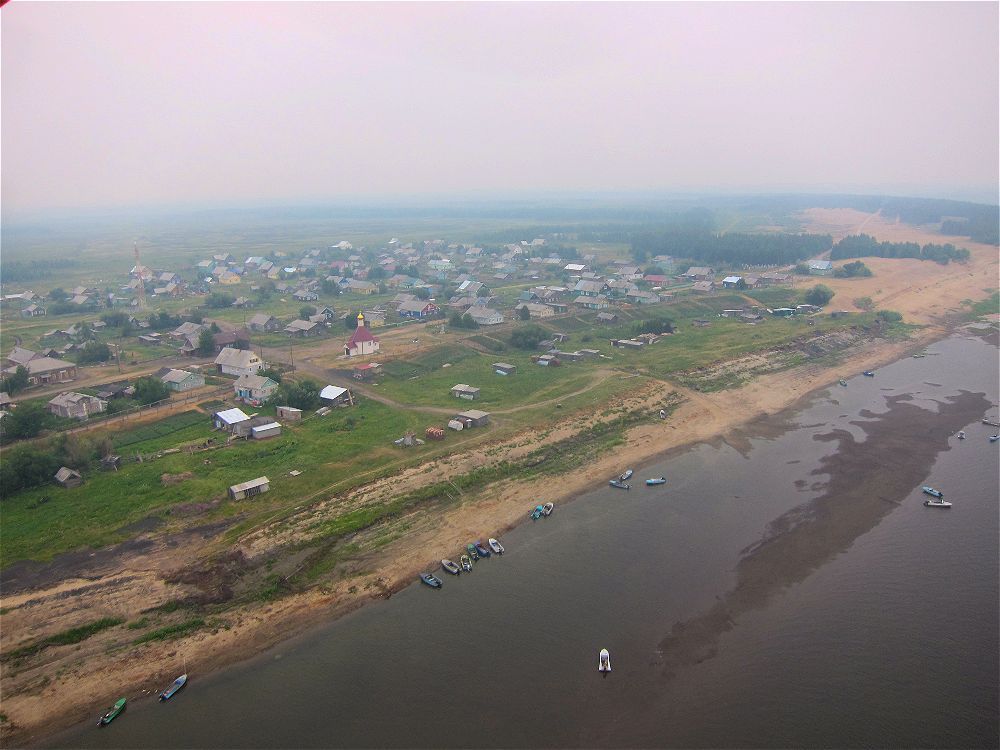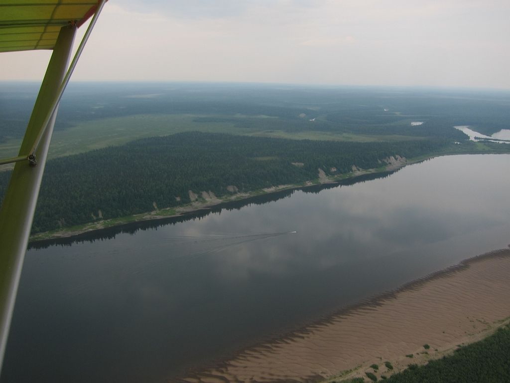 У Косьювома, река вновь сворачивает на северо-восток и я режу в полете излучины закрытые гарью лесных пожаров, стараясь не уходить далеко в дебри.