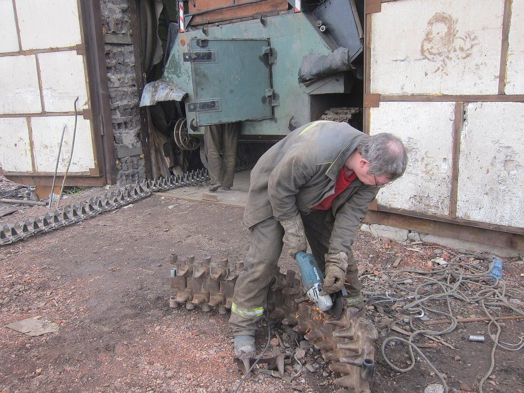 Идея затянуть гусеницу с помощью нашего вездехода привела только к отломаному ленивцу(опора катка).