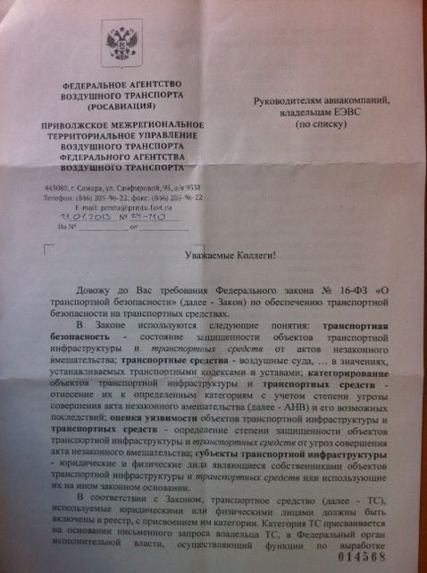 - по итогам Форума малой авиации в Ульяновске принята резолюция (опубликована в журнале "АОН" 8'2012, см. на http://www.reaa.ru/cgi-bin/yabb/YaBB.pl?num=1358325748), которую Правительство Ульяновской области передало в ноябре в своих письмах в учреждения, обозначенные в резолюции;