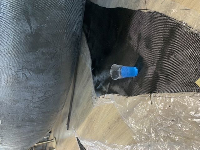 Обработал матрицу разделителем, Оказывается это очень удобно делать обычным валиком! а потом протягивать шпателем. Накинул «пилплай» подкладочную, к сожалению ее нормально использовать только внизу. Сверху вакуум сильнее прижимает, и ее тяжело отдирать приходится покупать дорогой пилплай(. В общем матрица готова к выкладке карбона. А маленькие пирожки уже спеклись)