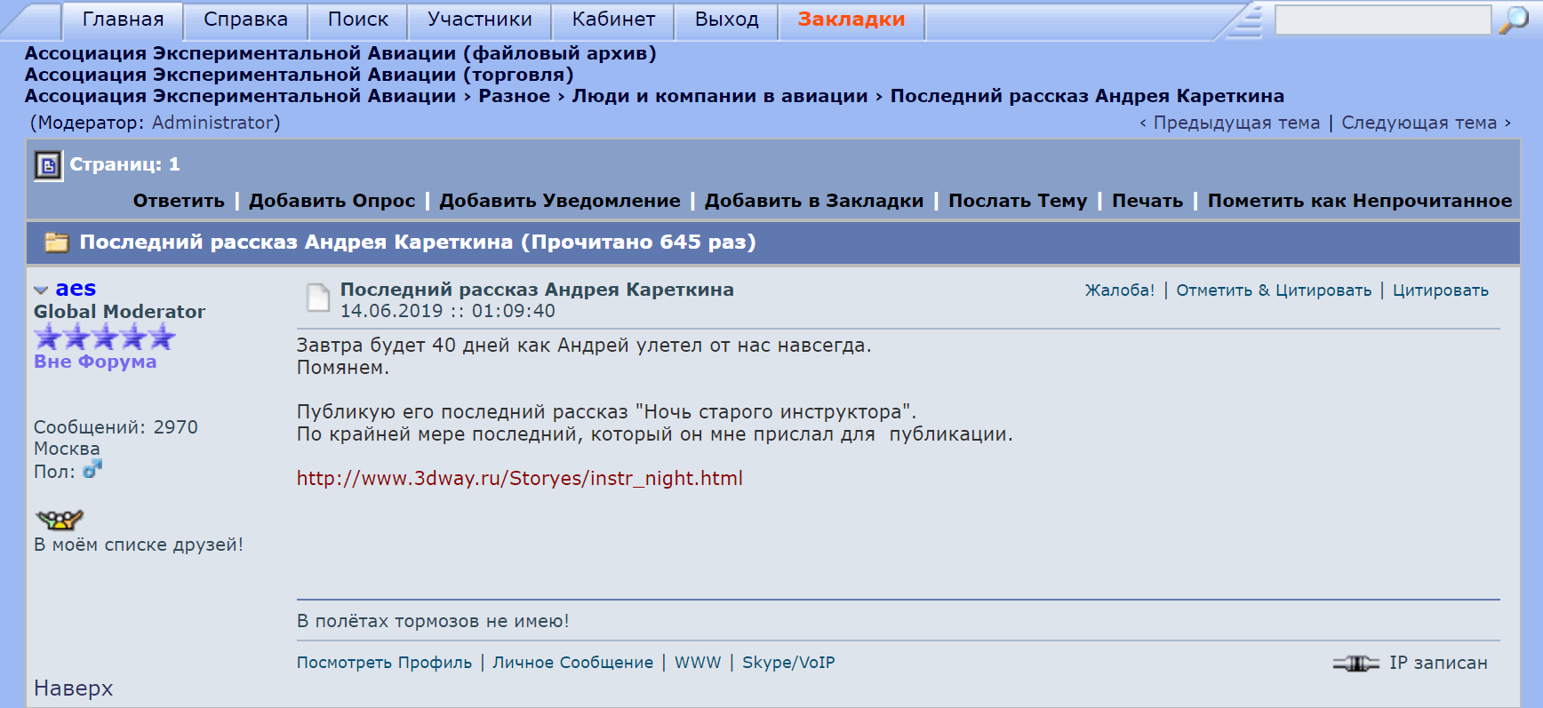 Присоединяюсь к соболезнованиям, хороший человек улетел, талантливый и влюбленный в небо, каких мало.