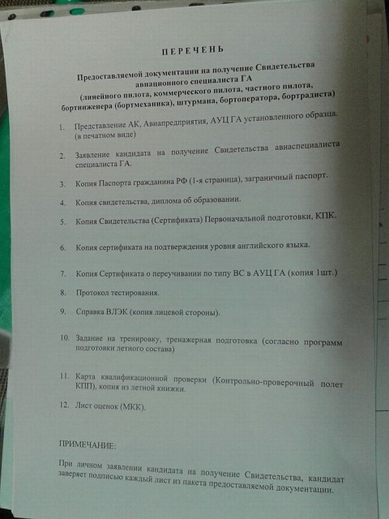 А в нашей мухобойной авиации всё происходит так: Пришёл кандидат, увидел такой вот перечень и ушёл дальше партизанить даже не разобравшись в каждом пункте требований.