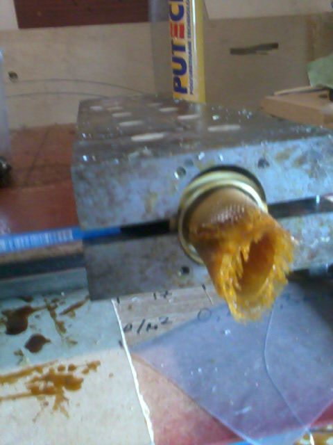 В стакан пока вот так контактно ,распираю резьбовым вставышем  Внутри  стакана 3 канавки проточки с уступом 1,5 мм.
