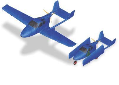 Складные основных крыла находится в задней части автомобиля и утка используется на фронте. Один или два двигатели с воздушными винтами или вентиляторами канальные будет производить +300 общей HP для выполнения самолета, по оценкам, крейсерская скорость от 200 MPH.  Диапазон как ожидается, будет до 1000 миль.