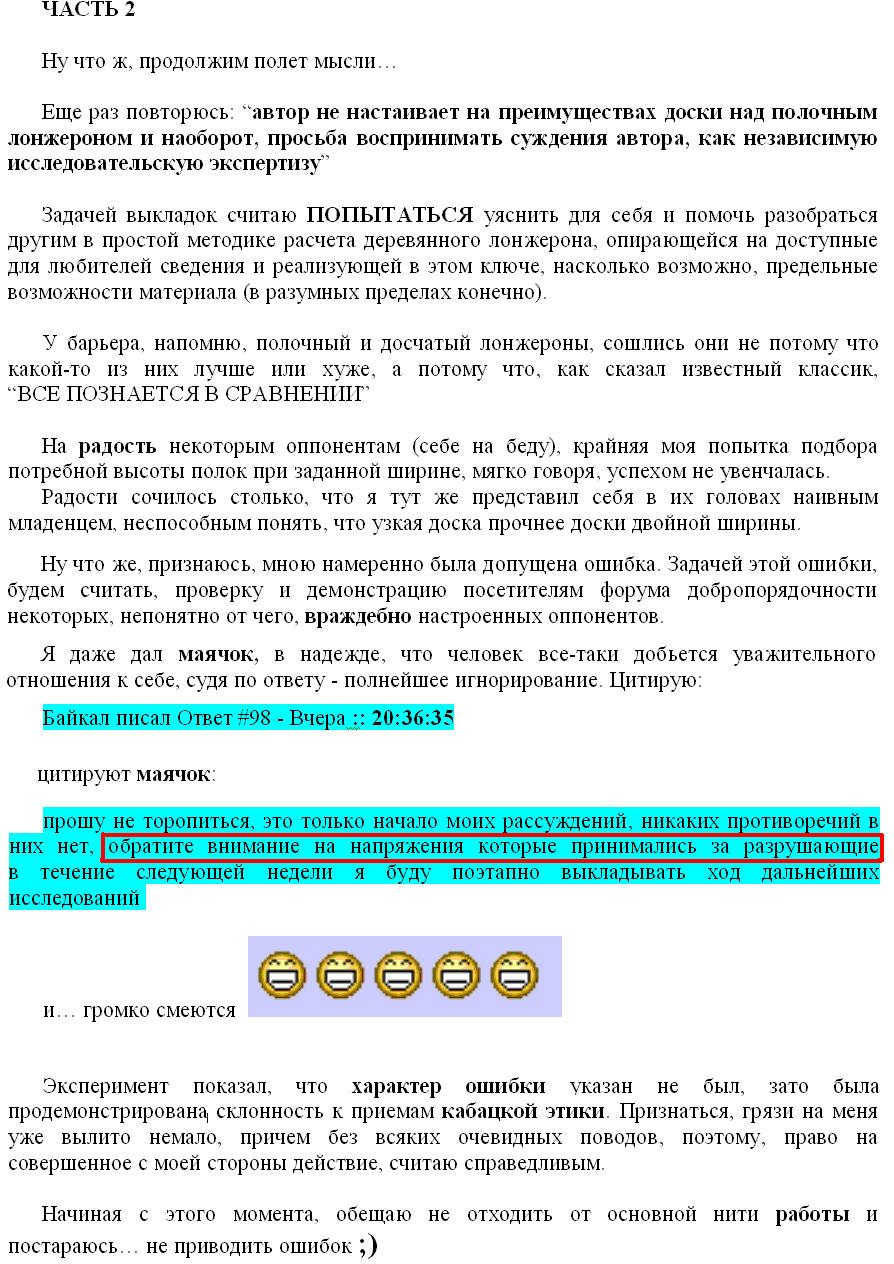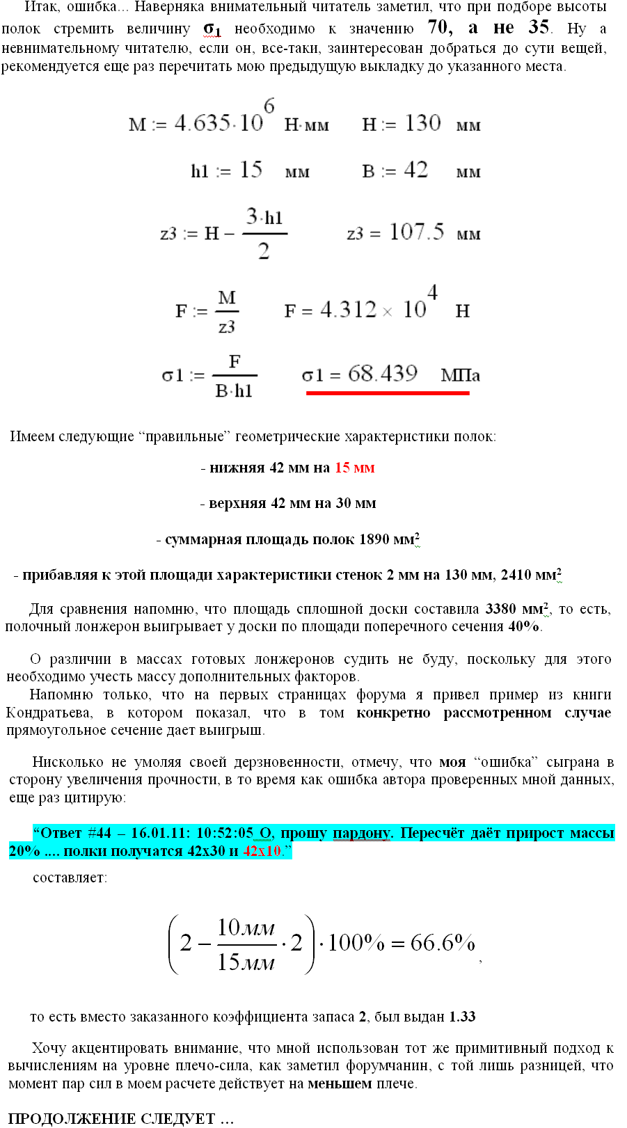 Никто не спорит,что момент сопротивления разный,прочитай еще раз пост 142.Именно потому,что разный момент сопротивления и потребуется разная нагрузка,чтобы ее сломать!Но сломается она при одинаковых НАПРЯЖЕНИЯХ,хоть так хоть так!Площадь сечения одна и та же, нагрузка одна и та же, а вот сопротивление изгибу-НЕТ