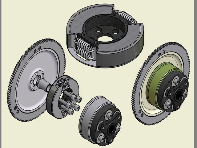 По твоему совету решили сделать "барабан сцепления" до диаметра 168 мм. В место самодельного фрикцина колодки готовые от ручного тормоза. "Голову" у стартера заменим, что бы тяговое реле ушло в второну. И не мешало изготовить плиту с большим диаметром.