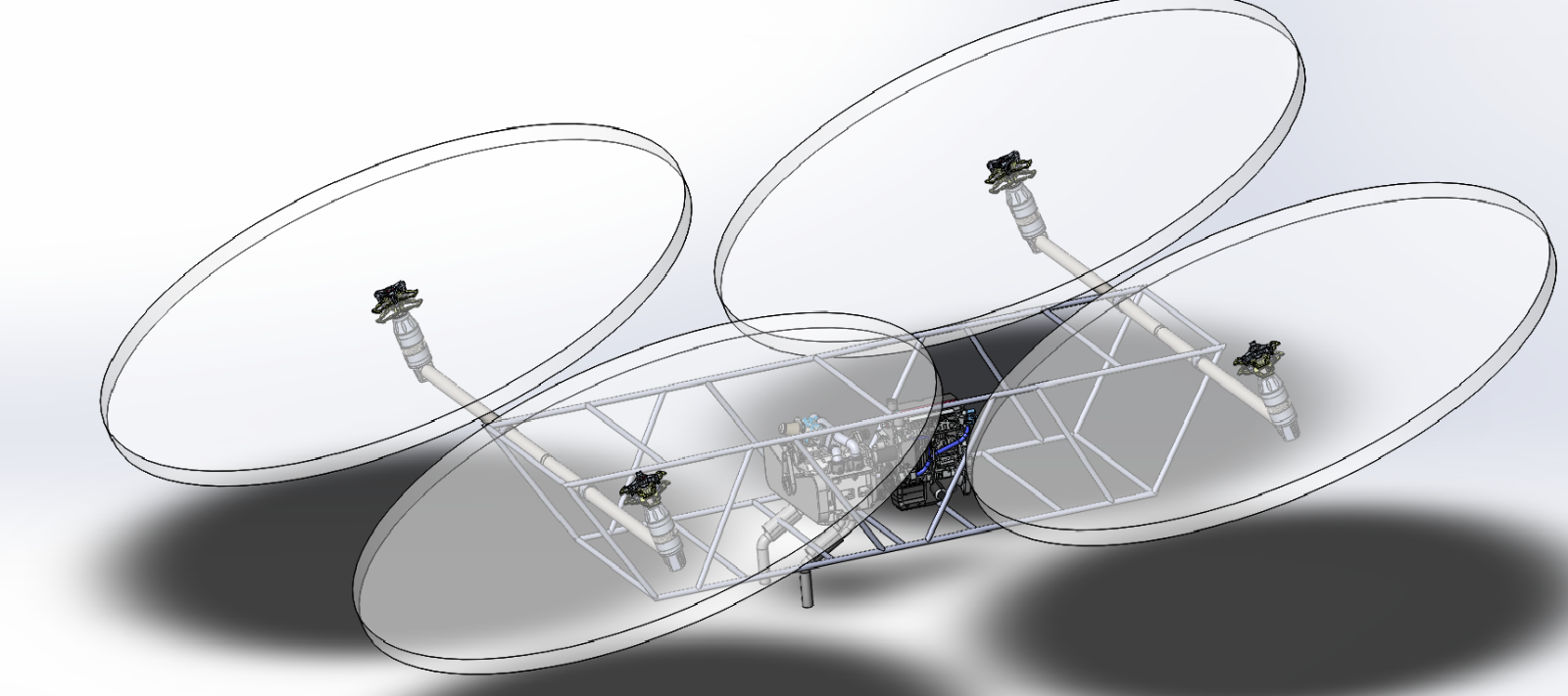 С гидроприводом если наклонить роторы, как на картинке, то очень шустро полетит. Только где жеж лопасти добыть?