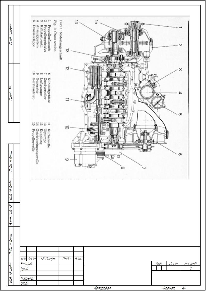 Привожу разрез авиационного двигателя "Порше". Двигатель 6-ти цилиндровый. Обратите внимание на размеры корпуса редуктора.