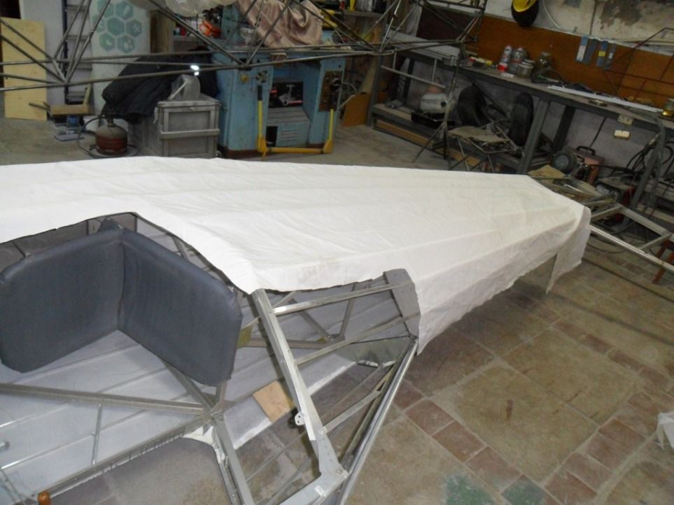 Приступил к обтяжке. Украинская псевдотермоусадка. При нагреве выравниваются  небольшие складки но натяжки не получается. Тянем эмалитом . 4 слоя.