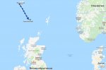 Коридор между циклонами. Приземлился в районе Эдинбурга в 18.40 МСК. До точки старта - финиша один перелет.