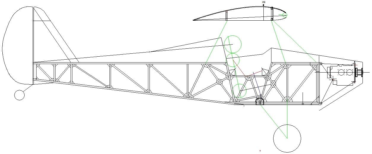 Удивительно с каком упорство продвигаете самая неподходящая компоновка!Она совсем неприемлема с тяжелой автодвиг.Чтоб получилась центровка,двигатель должен стоят на коленках у пилотов на месте РУС!Лучше схема МАИ 223 парасоль,или классический низкоплан.При схема МАИ на худой конец и труба пойдет как целый лонжерон,нервюры как у Ермакова,один подкос.Крыло выше,кабина обтекаемая как у эти фотографии наверх этой странице,посадка сбоку.