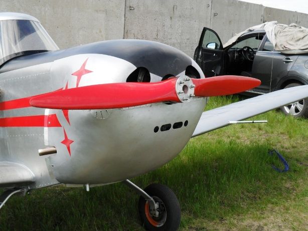 Да со стойками небольшой просчет. Из за тяжелого двигателя, что бы получить центровку в пределах 25-27%.т., пилота пришлось сдвинуть назад, примерно 54 см. от ц.т. самолета.  Поэтому без пилота вынос шасси совсем минимальный.  Двинуть рессорку миллиметров  50-70 вперед не помешало  бы но сейчас это большая работа. При разбеге пробеге проблем нет Но а на стоянке буде сразу же швартовать.