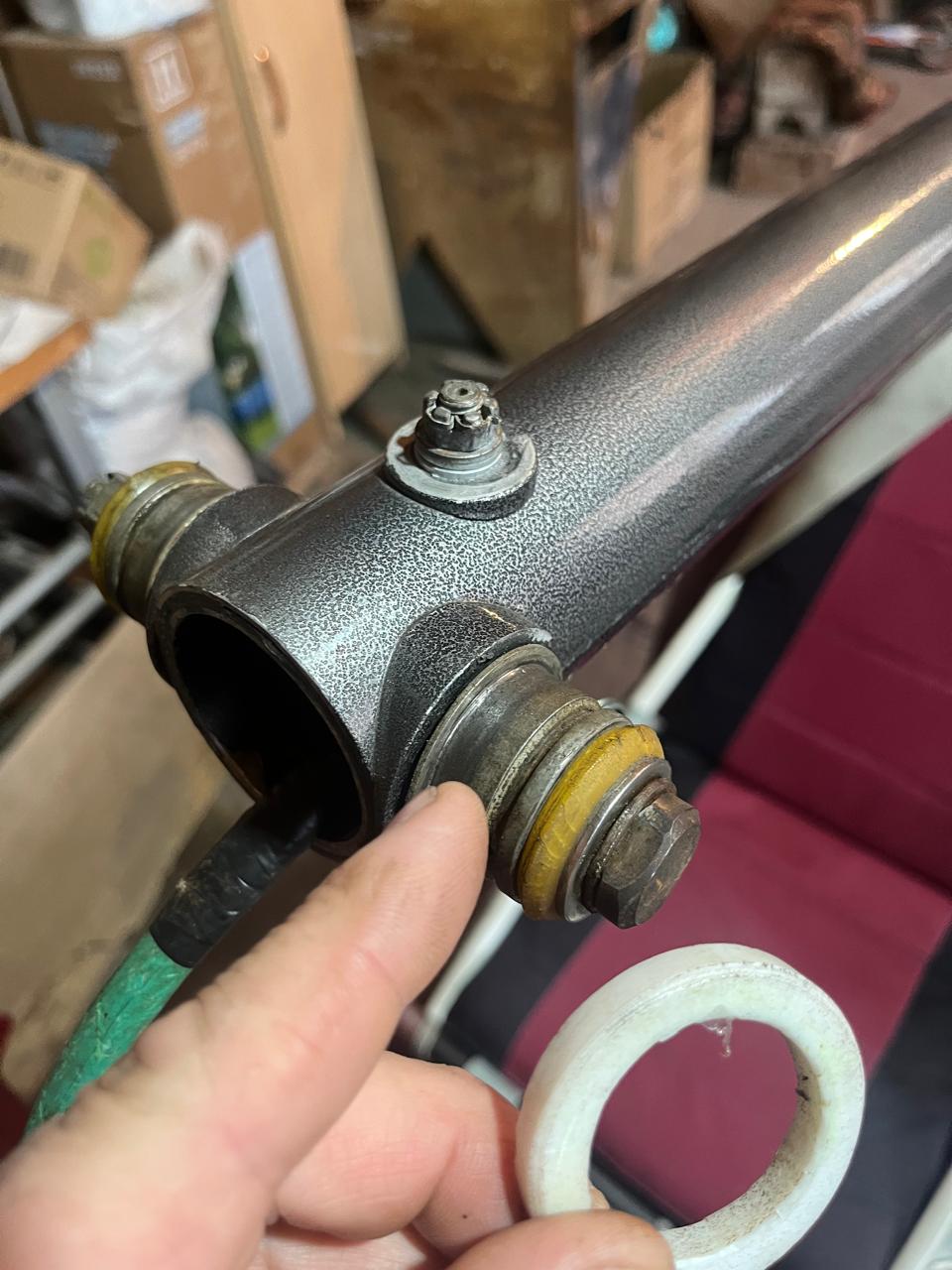 Должна быть запрессована, с натягом в пилоне ( в буже и в наборе трубы пилона ). Обычно, эта посадка выполняется под развёртку, с минусовым полем допуска.