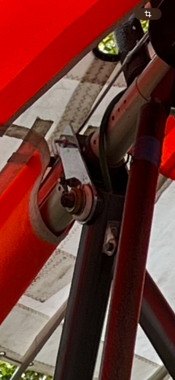 Часто, в однотрубной конструкции, имеет люфт в нижней точке крепления к нижней балке тележки. В результате, крутится вместе с узлом подцепки и килевой трубой крыла. Крыло "рыскает", но не из-за люфтов в узле подцепки.