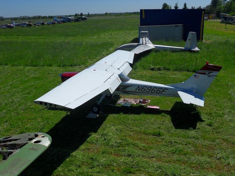 С крылом несколько моментов. Еще в штатах видать немного куда то уперлись левым крылом, в самую законцовку. Немножечко, пластик только поцарапался и немного погнуло лобик. Но этого всегда хватает чтобы погнуть задний лонжерон у корня в районе внутреннего кронштейна закрылка. Там метал всего 0.8 и нагрузки полетные небольшие, но если упереться лобиком во что нибуть, будет капец. Я видел уже такое. Причем лупонули два лобика, самолет не прошел в ворота🙂. Но все это ремонтируется, благо все есть в мануалах. И второй момент, пока везли ко мне, умудрились по нашим дорогам рострясти увязку и правая плоскость достала лобиком куда смогла. Две дурки. Уже заделал их.