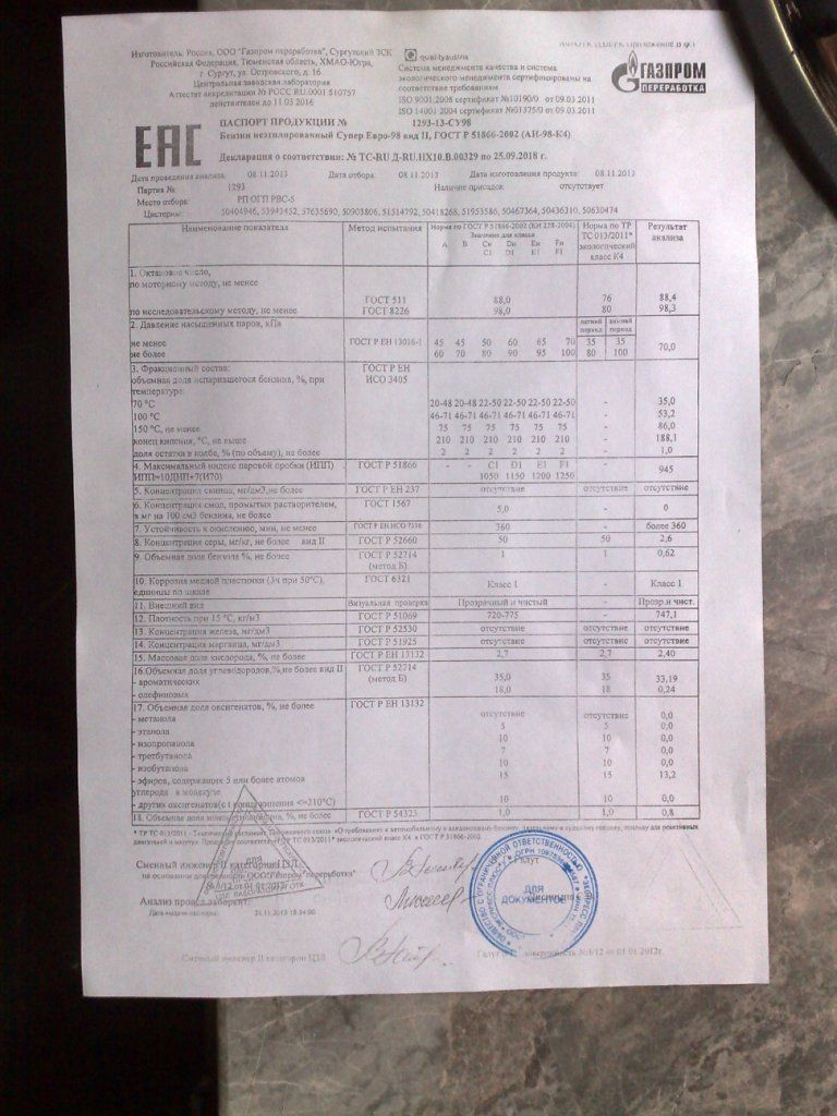 каждая партия бензина индивидуальна,