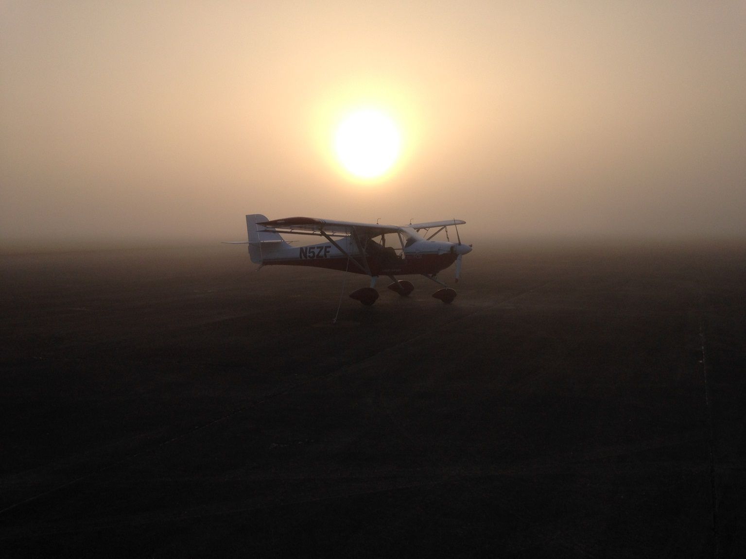 Утром мы проснулись в тумане. Встали, позавтракали в том же ресторанчике и поехали в аэропорт. По дороге заправили машину и по прибытию в аэропрот стали неспеша готовить самолет к вылету.