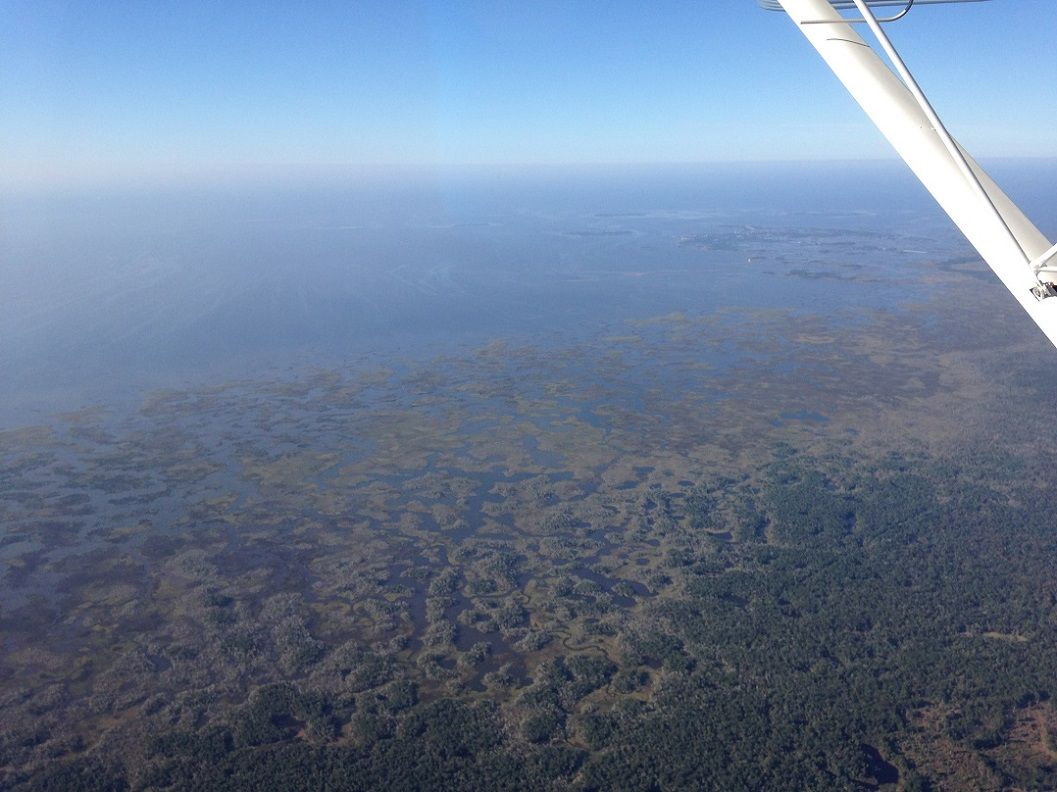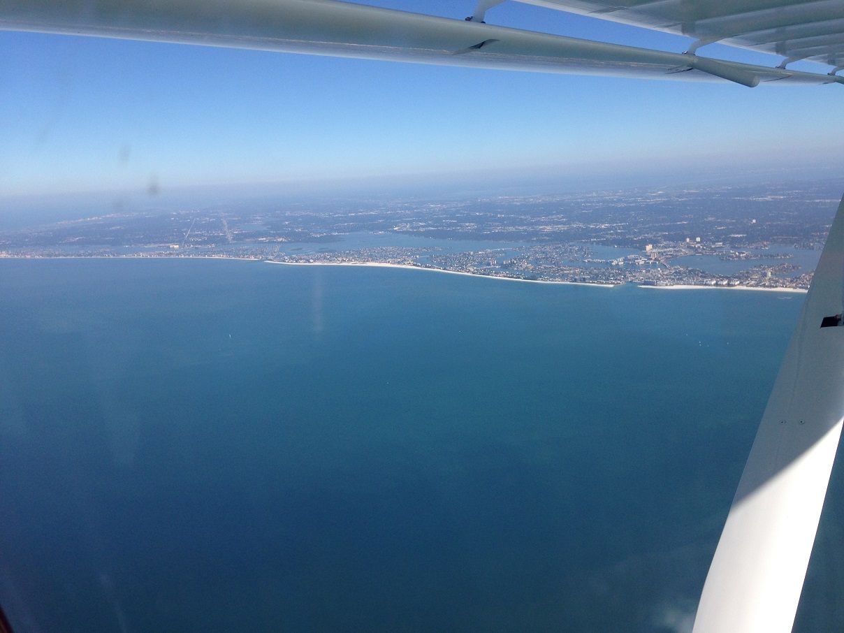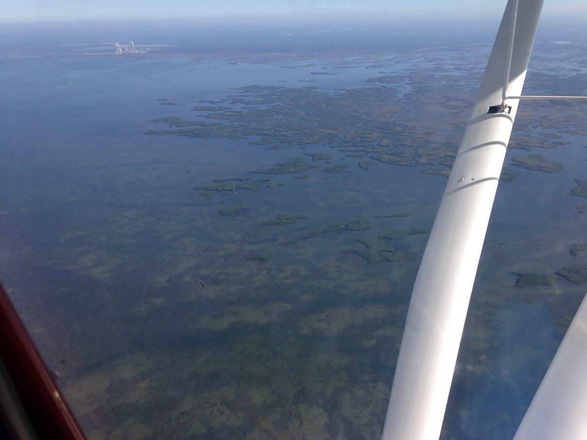 В этот раз нам предстояло лететь мимо Тампы через их пространство класса «Браво». Делаем запрос на сопровождение и гадаем, пропустят или заставят облететь. Диспетчеры явно зашивались и каждый раз, когда они что-нибудь говорили по радио, было слышно, как у них там пищит сигнализация об опасном сближении. На подлете к Тампе нас отправляют в море и мы облетаем «Браво» летя над водой.