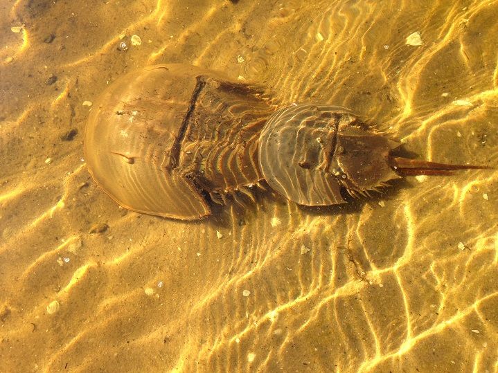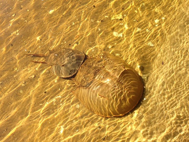 Идем вдоль берега и видим, как к берегу подплывают ровесники динозавров – подковообразные крабы, как и тут называют. Похоже, что они заняты процессом размножения и сделав пару фоток мы идем дальше.
