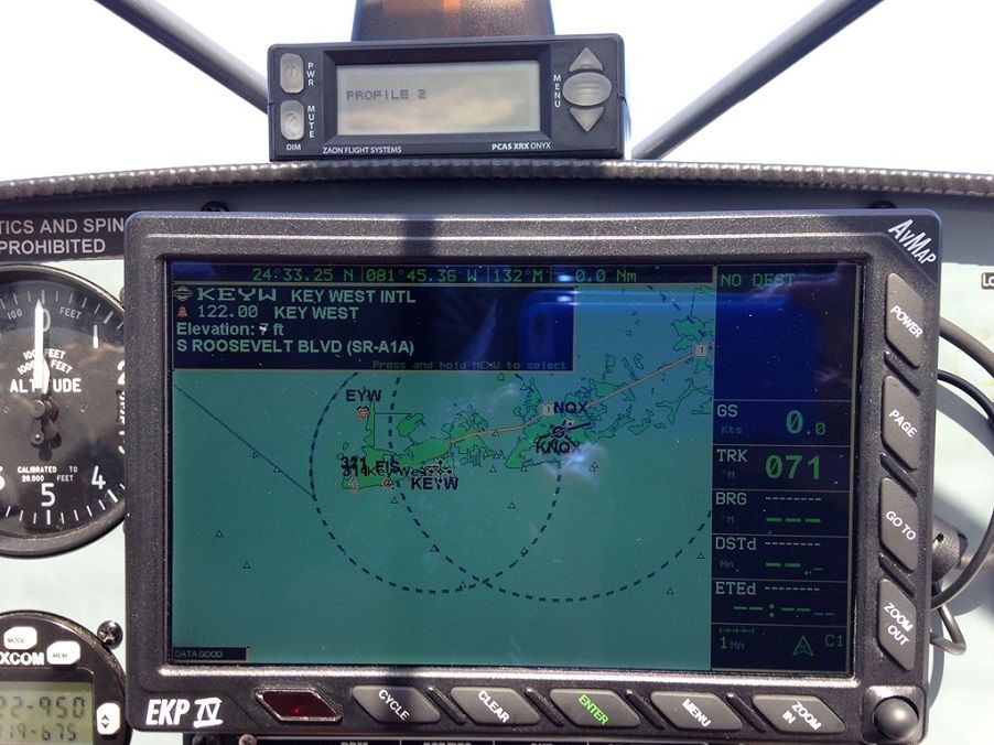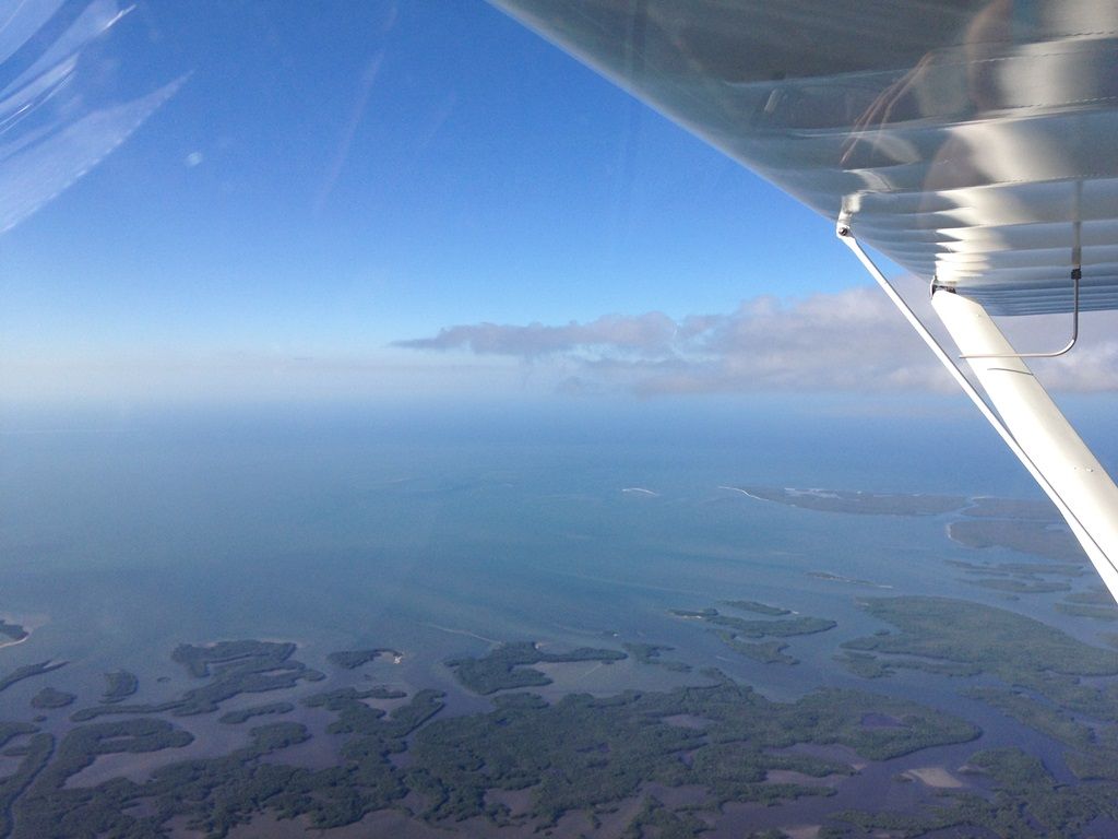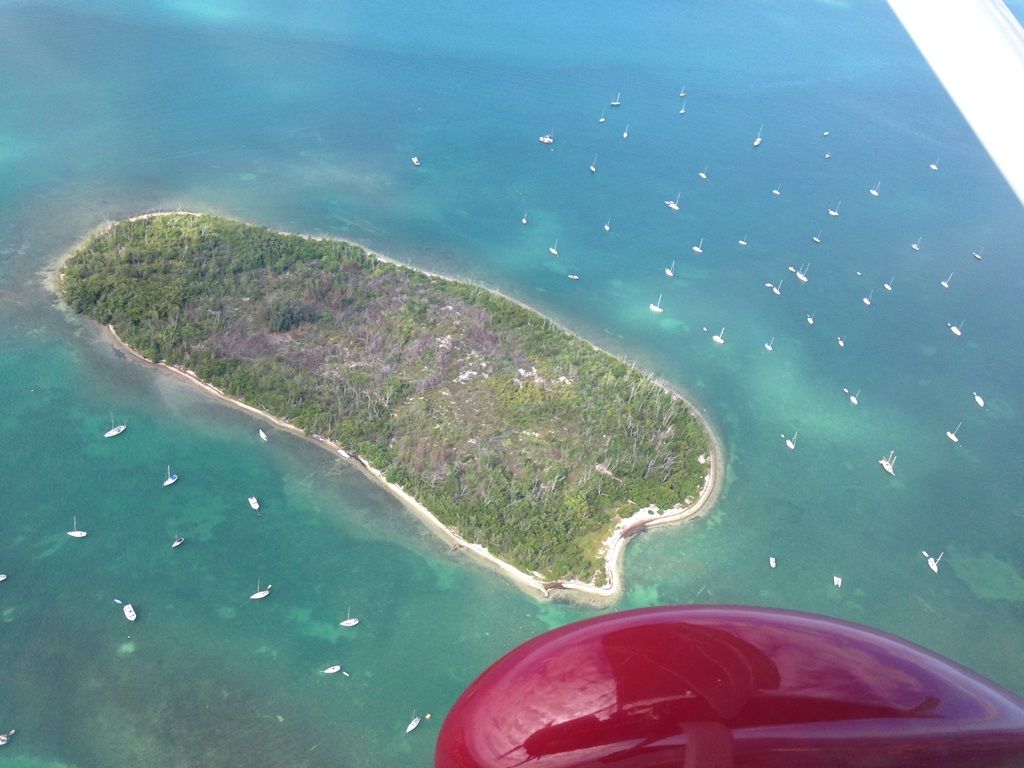 Теперь нам надо окончательно определиться с маршрутом. По плану мы должны прилететь на Маррафон – один из островов в центре цепи островов Кий, а оттуда уже, по погоде, решать лететь до последнего острова Кий Вест или нет. Погода стоит хорошая и нам сказали, что у нас остался один или максимум два дня хорошей погоды. Я предлагаю рвануть сразу на Кий Вест, пока есть погода, а потом вернуться на Марафон и там заночевать. Нина соглашается. Летеь нам теперь предстоит над водой и чтобы сократить полет над водой мы решаем лететь сначала на Марафон, а потом, не садясь, повернуть на Кий Вест и лететь вдоль островов над ними. Мы одеваем наши спасжилеты и взлетаем. Опятть запрашиваем сопровождение и получаем его. Но, похоже, диспетчеры что-то сделали не так и найти эту часть полета у них в системе я потом не смог. Все остальное нашел, а этого куска нет.