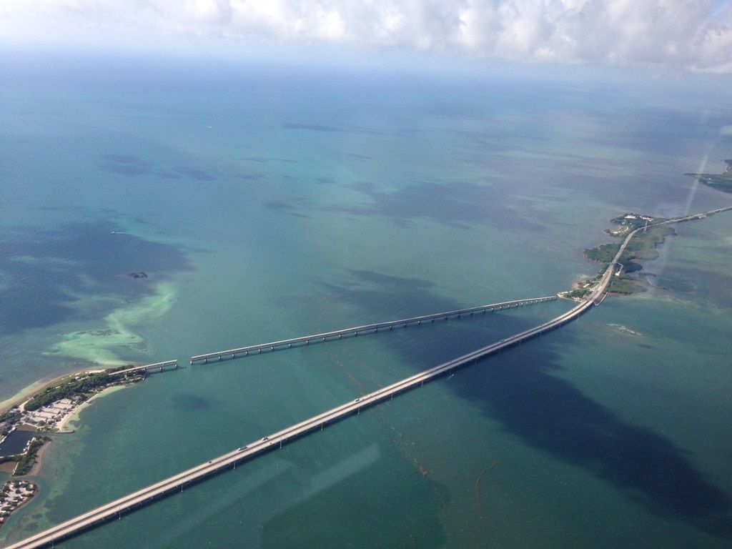 Долетели до Марафона и повернули на Кий Вест. Очень интересно лететь над длинными мостами, по которым мы когда-то проезжали на машине с нашими детьми. Как давно это было...